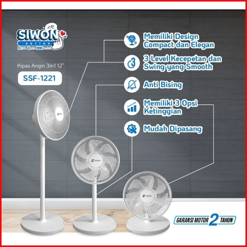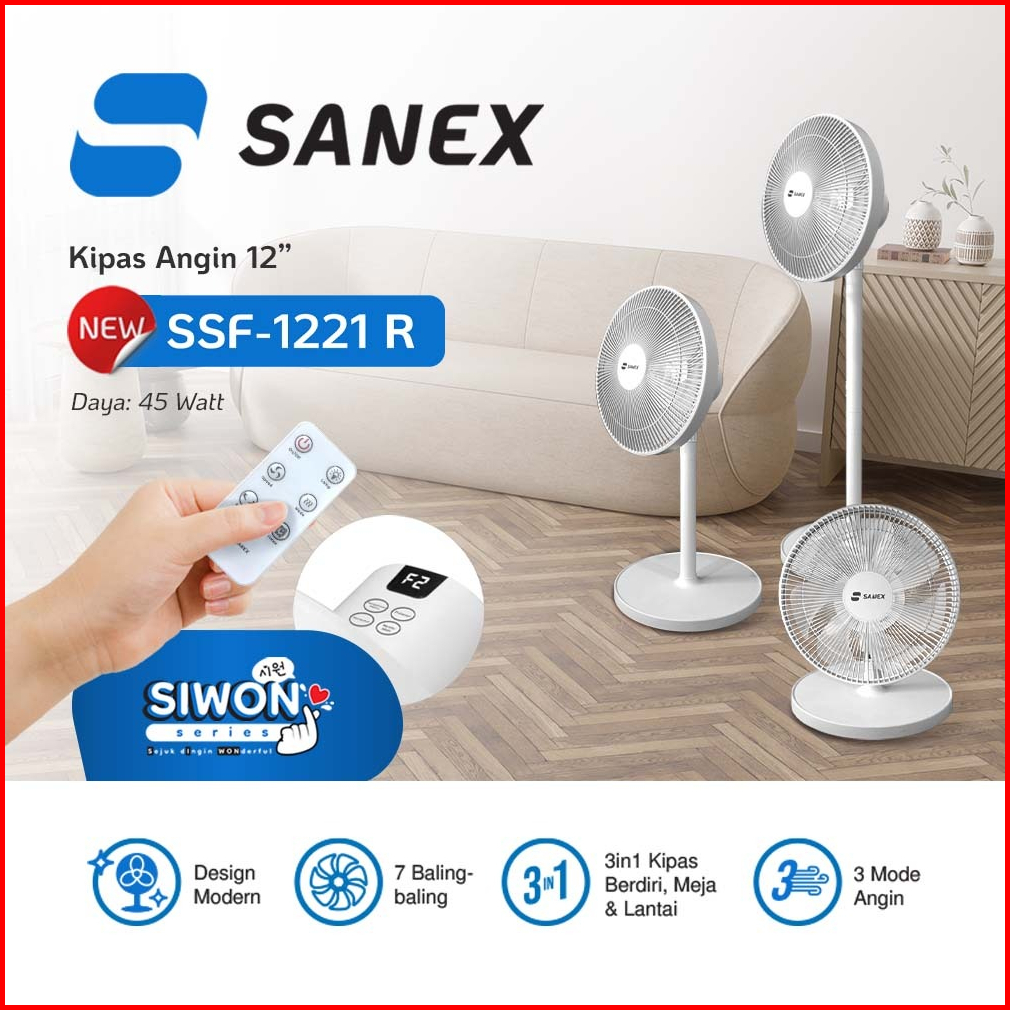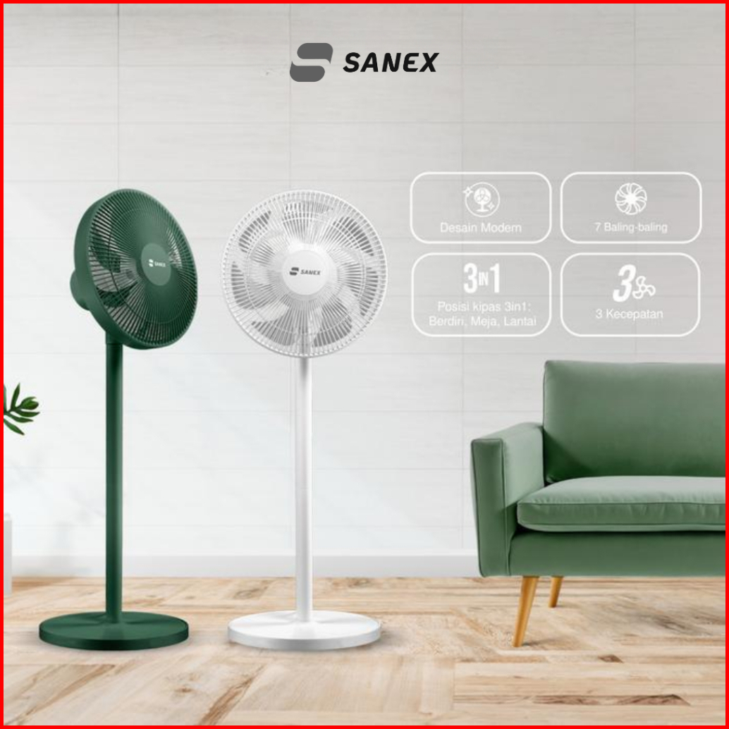 Sanex Stand Desk Fan Kipas Angin Meja Berdiri 2 In 1 12 Inch 7 Baling Ssf-1221 N Design Modern Minimalis Baling Bening T