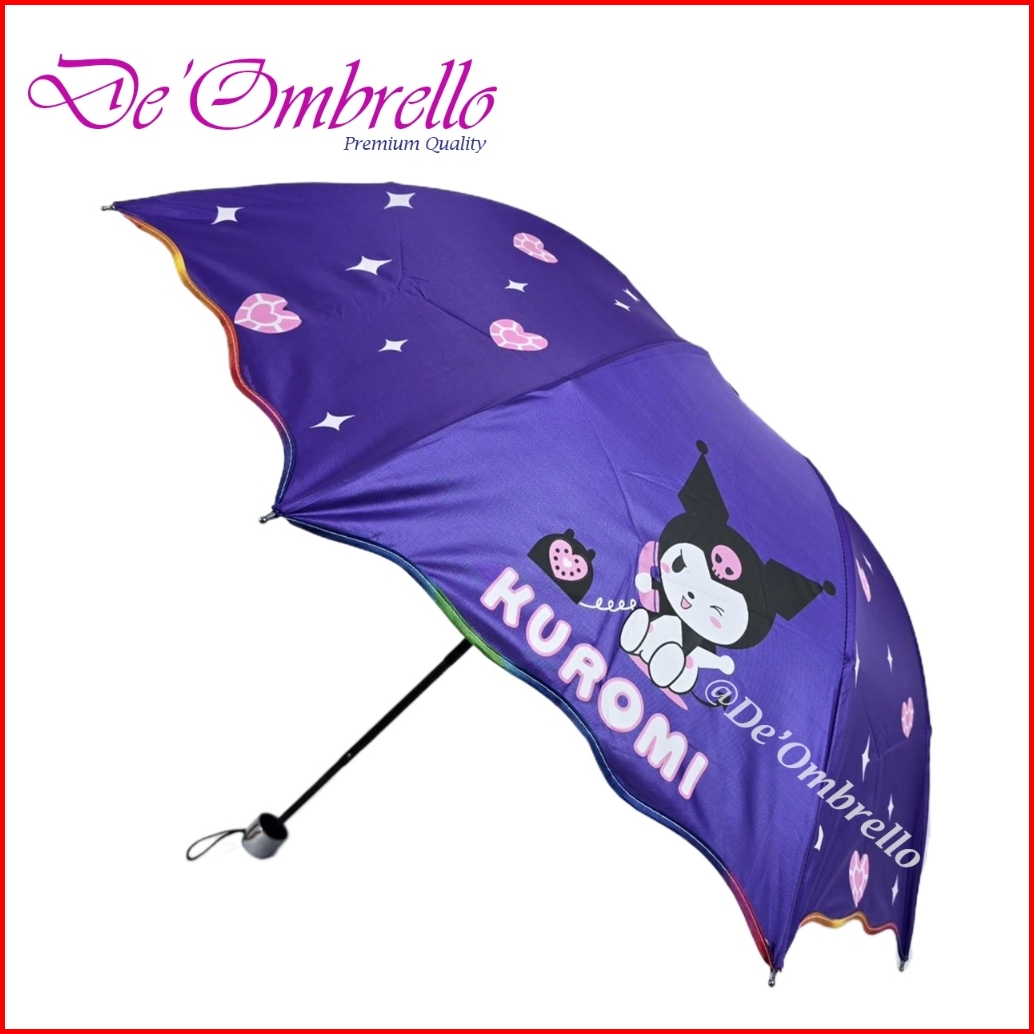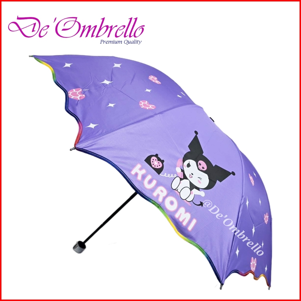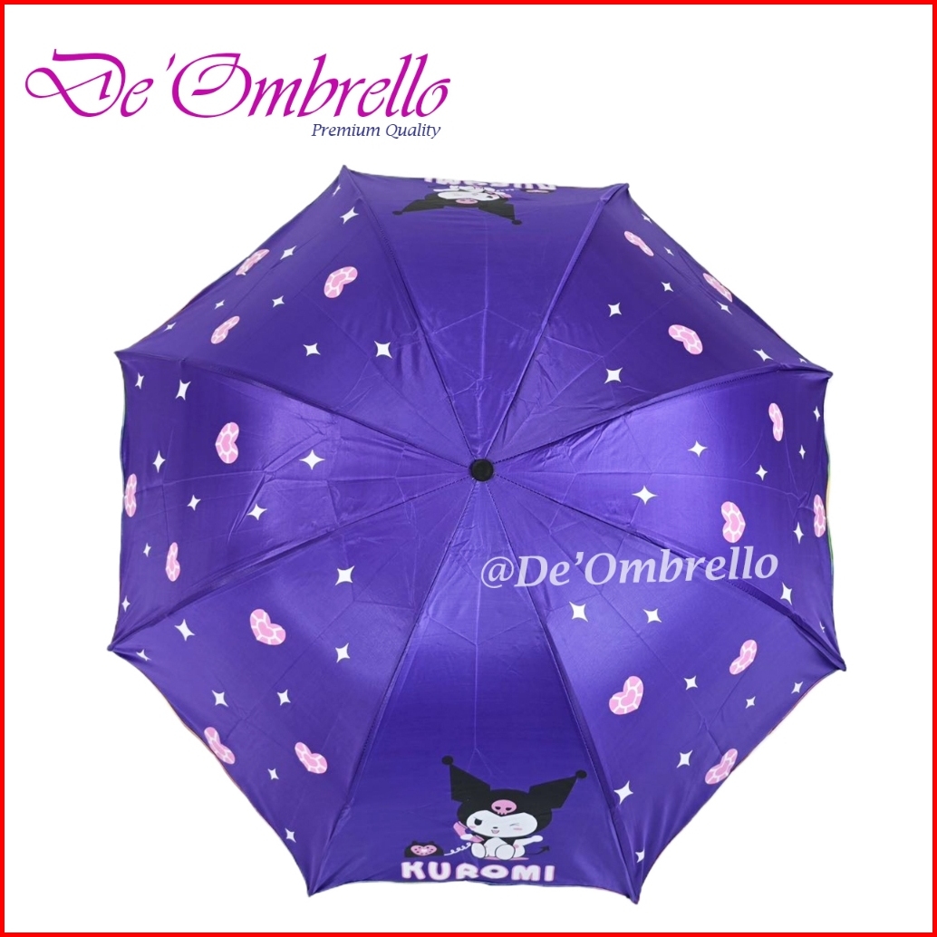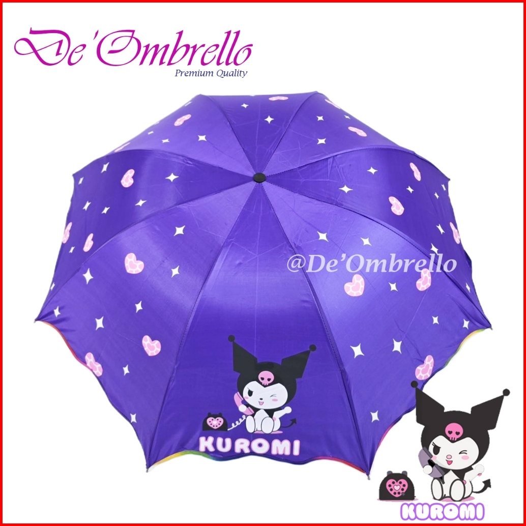 561 Payung Lipat 4 Fancy Anti Uv Motif Kuromi Lapis Silver Anti Uv Payung Fancy Premium Quality