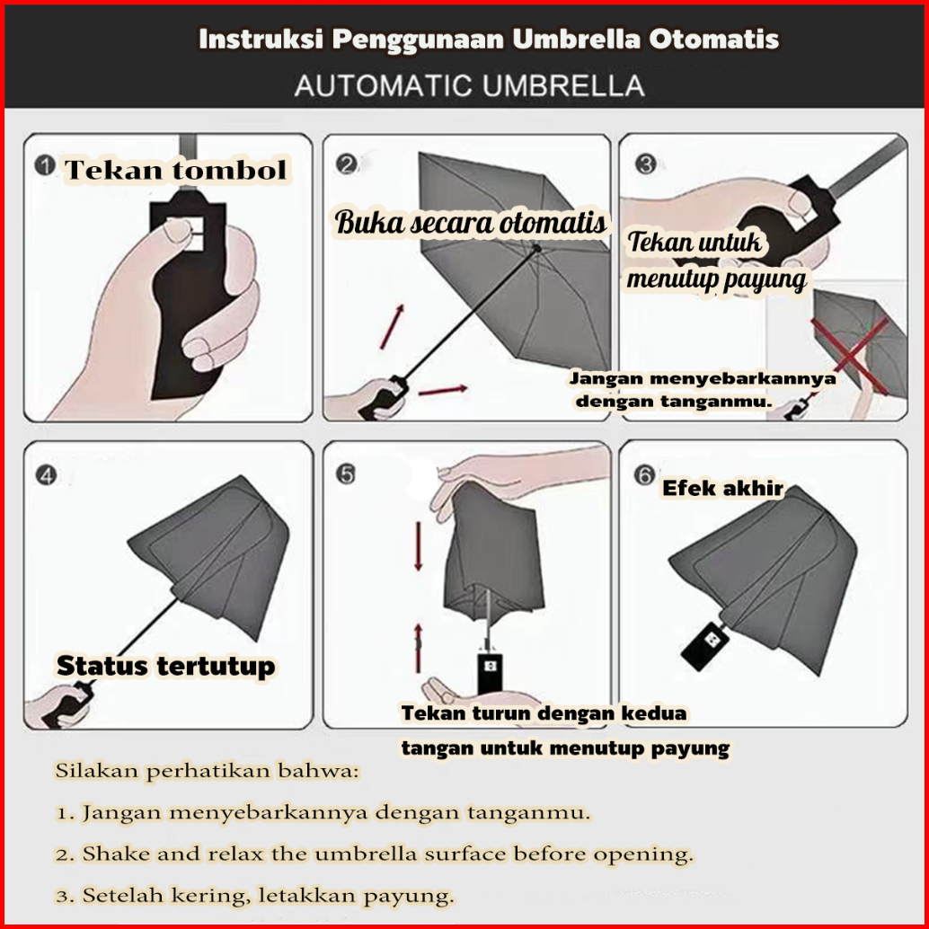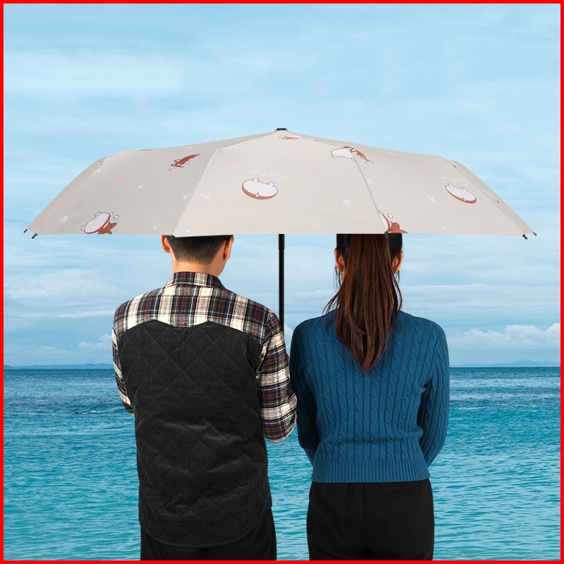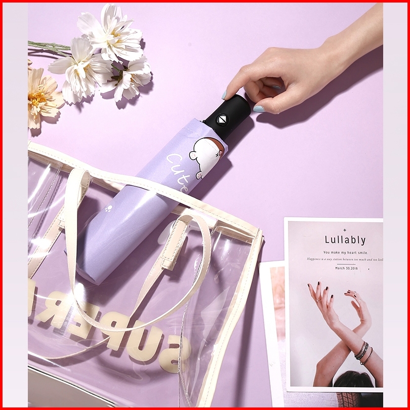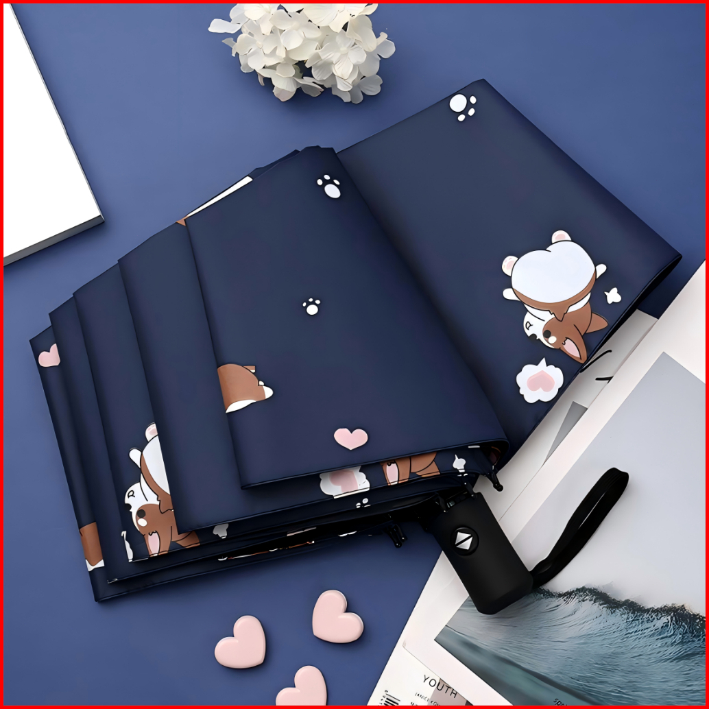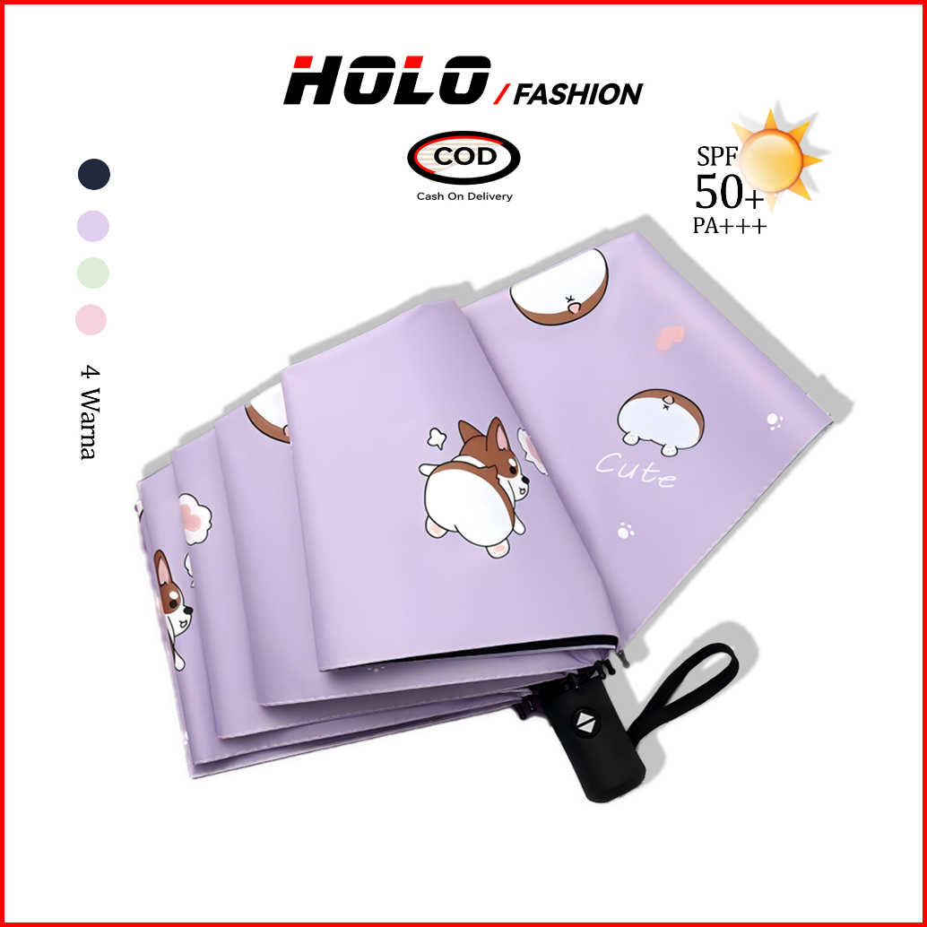 Holo Payung Lipat Otomatis Anti Uv Tebal Payung Anti Hujan Dua Penggunaan Umbrella Corak Puppy Lucu