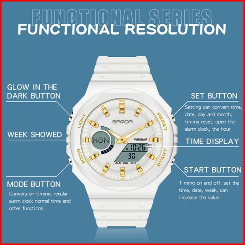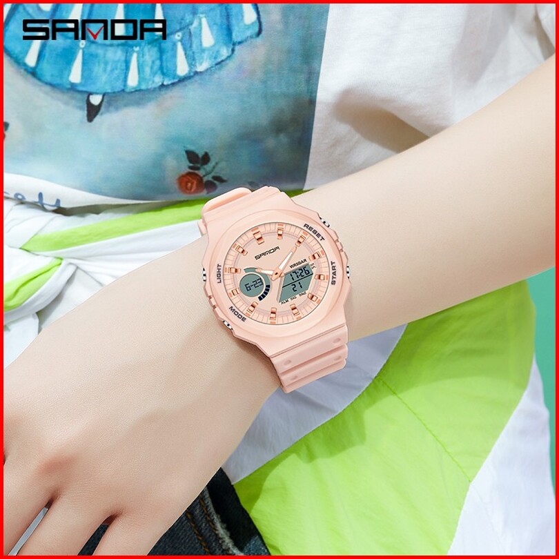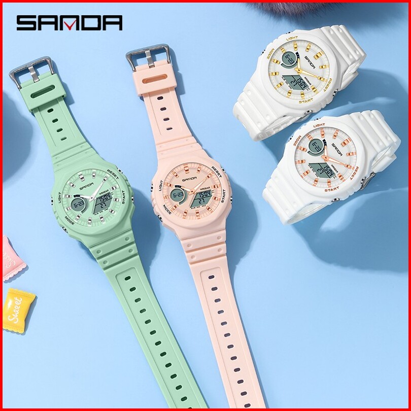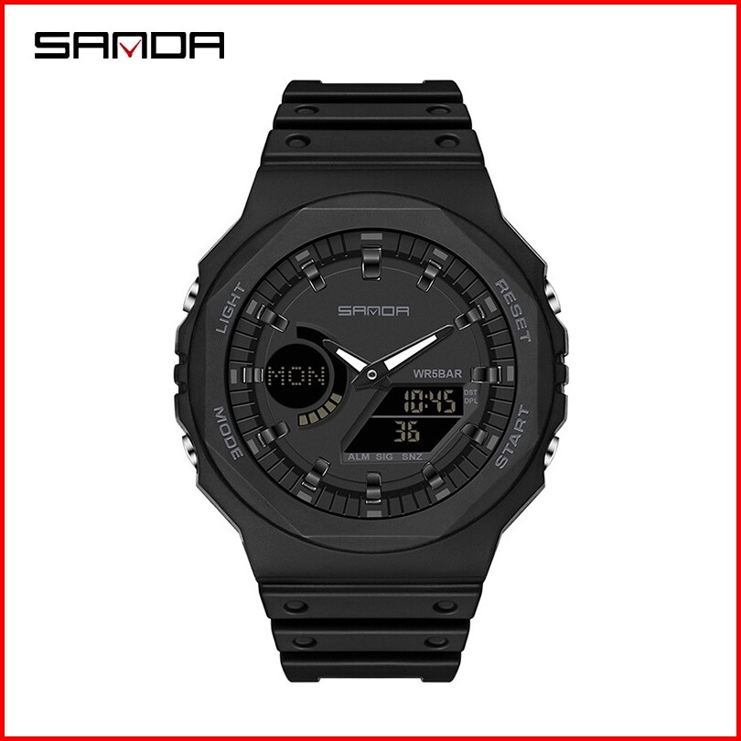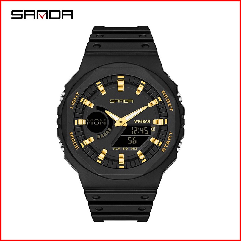 Sanda 6016 Jam Tangan Pria Wanita Digital Sport El Backlight Tali Rubber Anti Air Currenos