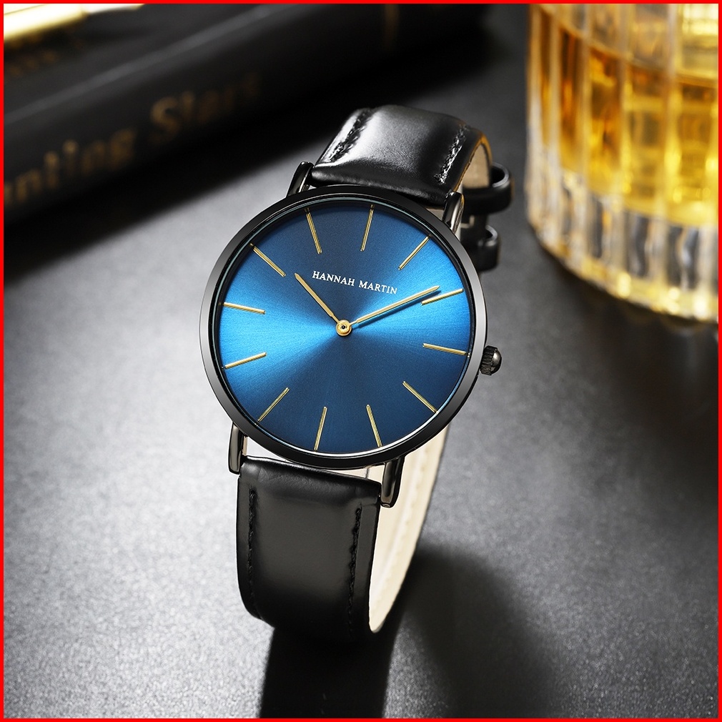 Hannah Martin Jam Tangan Pria 100 Original Keren Sangat Tipis Quartz Cowok Couple Kulit Anti Air Men Watch Laki Arloji M