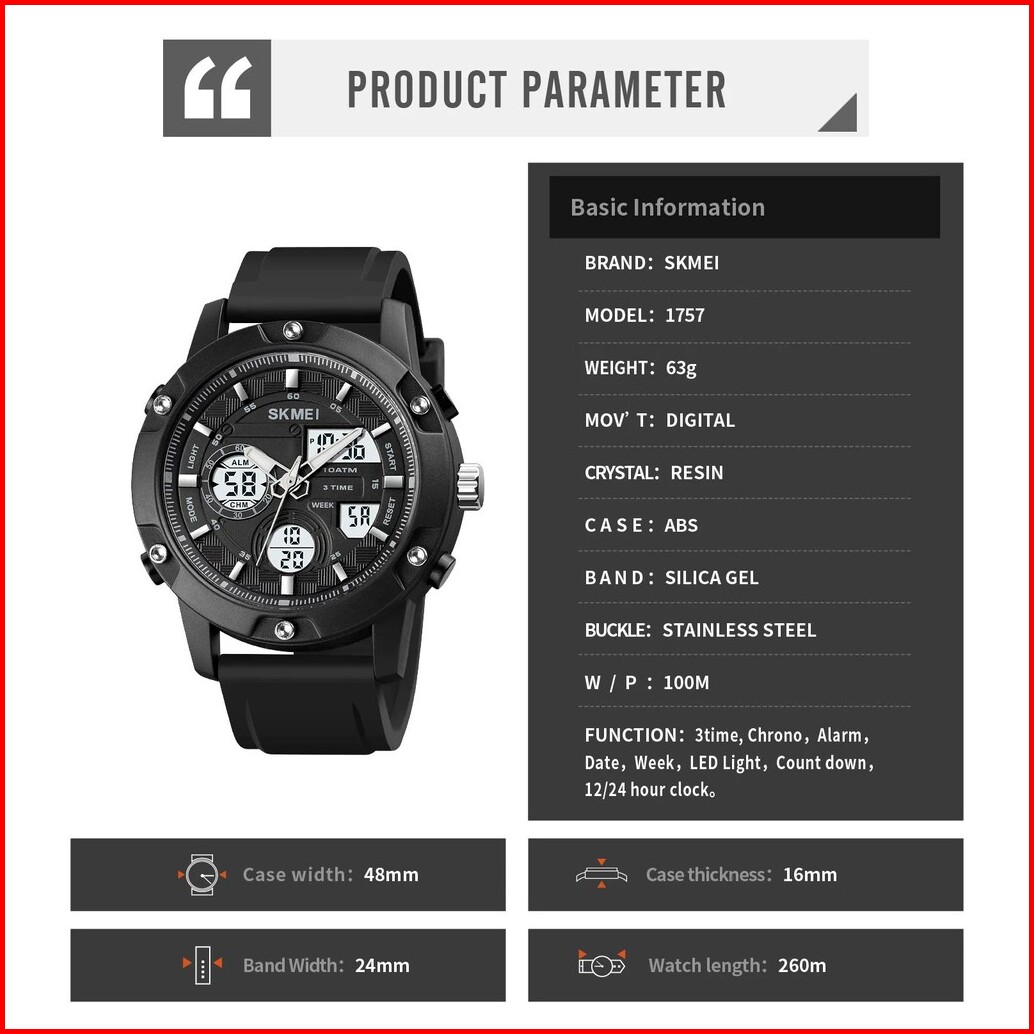 Skmei 1757 Jam Tangan Pria Digital Anti Air 10 Bar Mgos