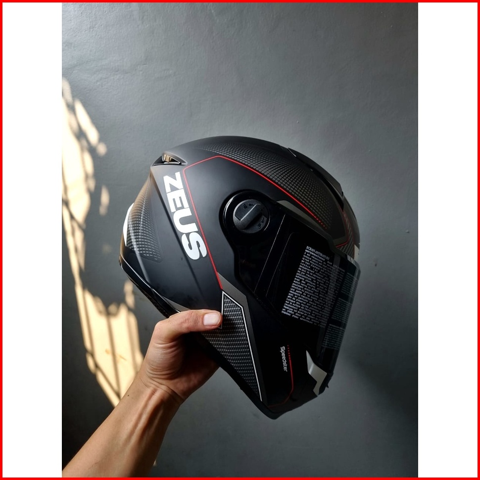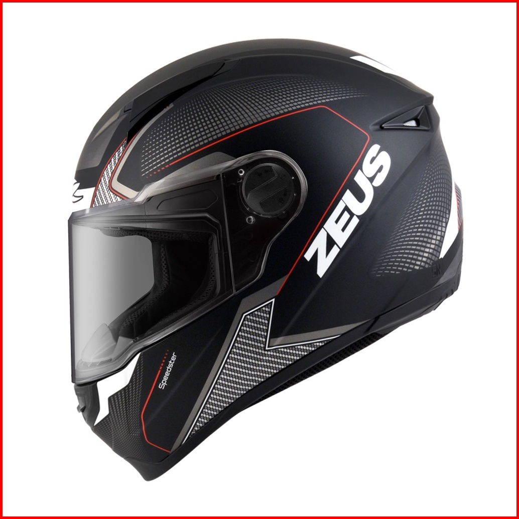 Cacat Zeus Zs 811c Mblk Al6 Whi Red Doff Full Face Single Flat Visor
