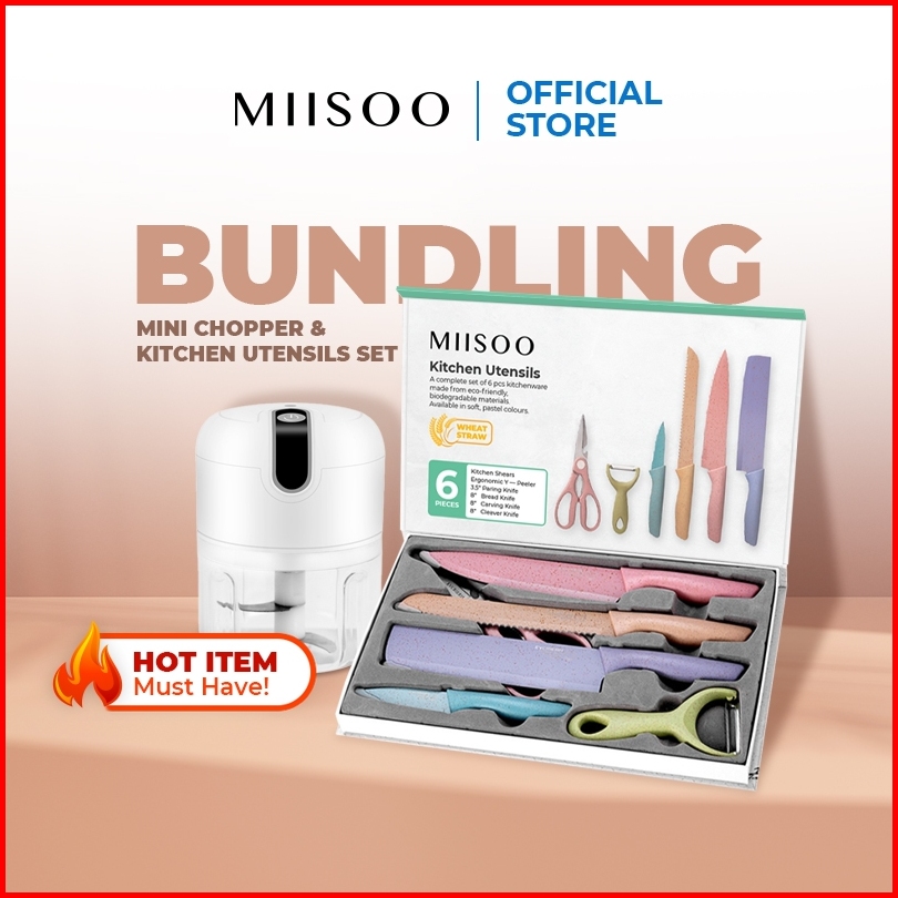 Miisoo Special Bundling 2in1 Set Pisau 6 In 1 Stainless Blender Usb Mini Chopper Blender Portable