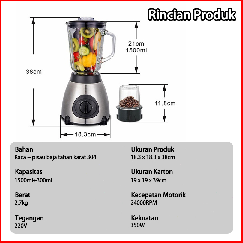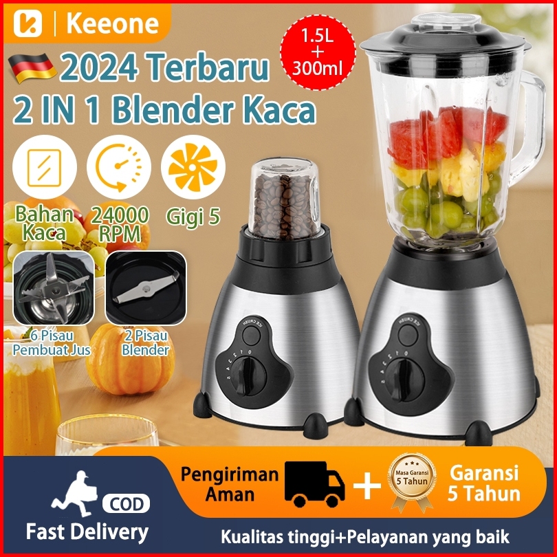 Keeone 1.5l Blender Buah Kaca 6 Pisau Juicer 300ml Blender Jus 2 In 1 Mesin Blender Smoothies 5 Gigi Cabe Blender Choppe