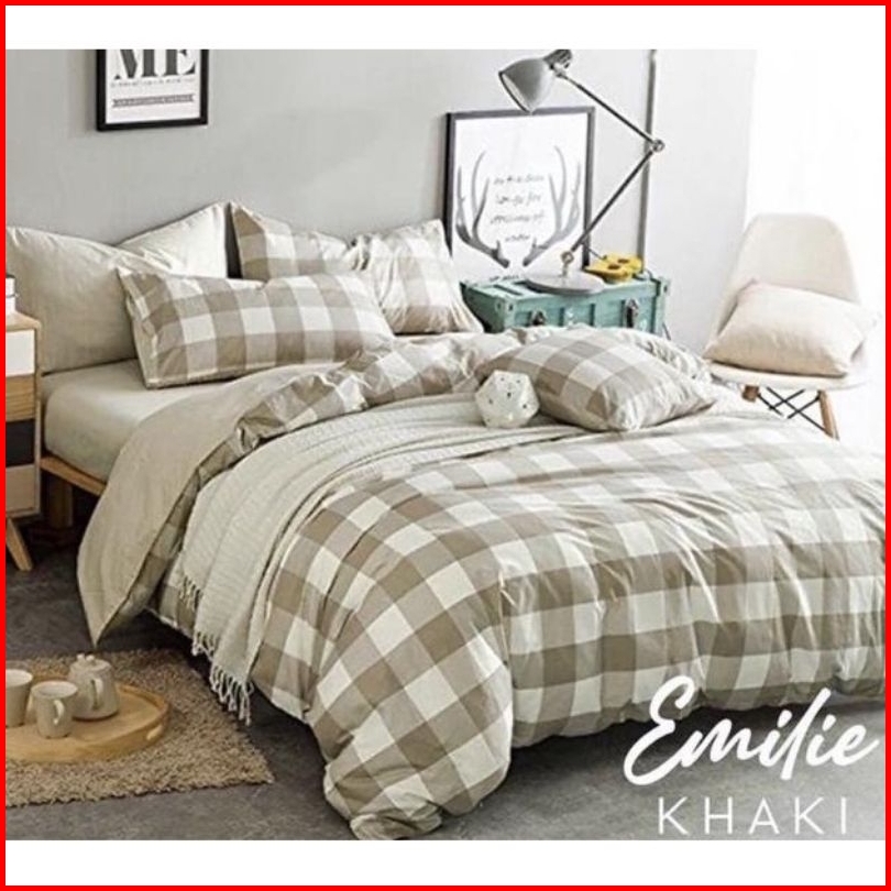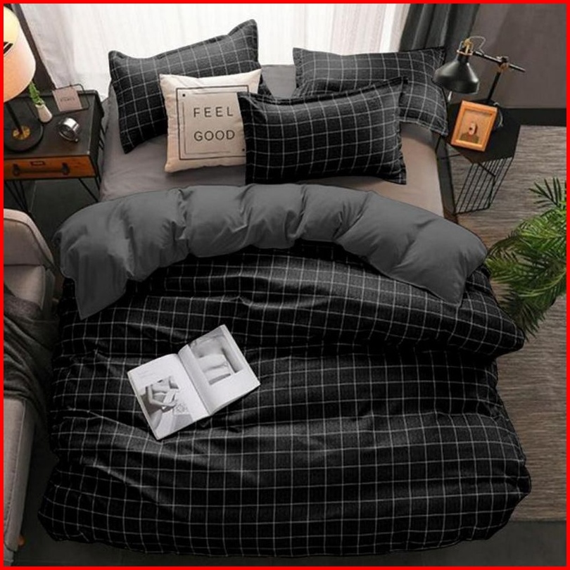 Bedcover 1 Set Bedcover Sprei Motif Kotak-kotak Aeshtetic Minimalis Uk 180x200