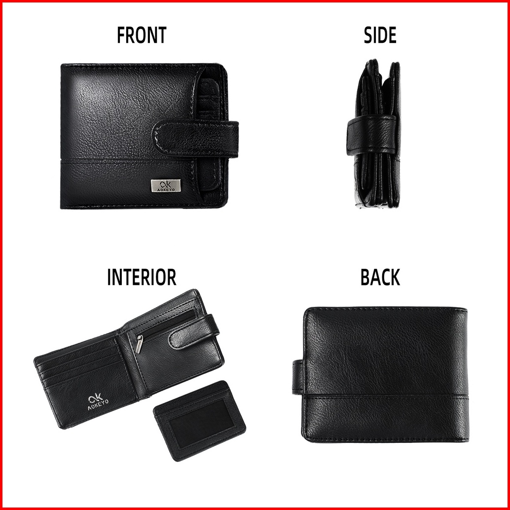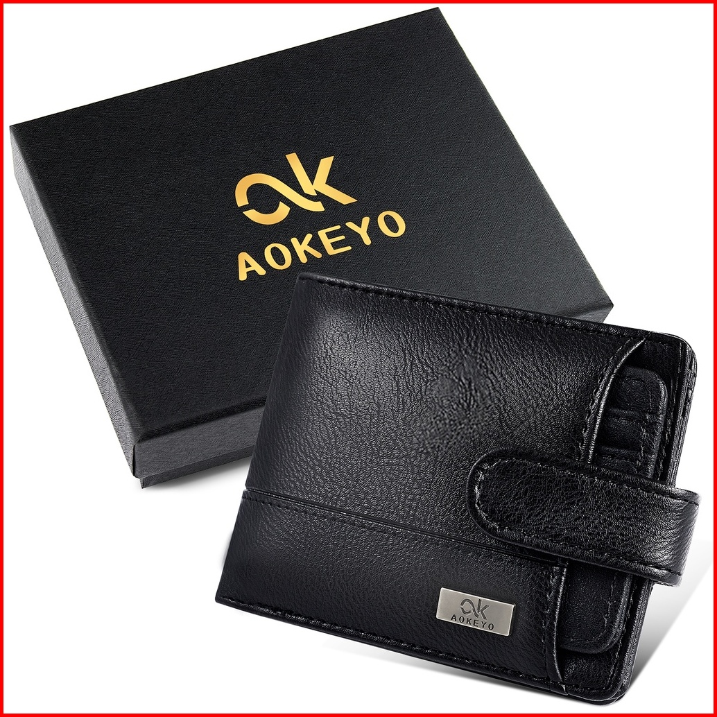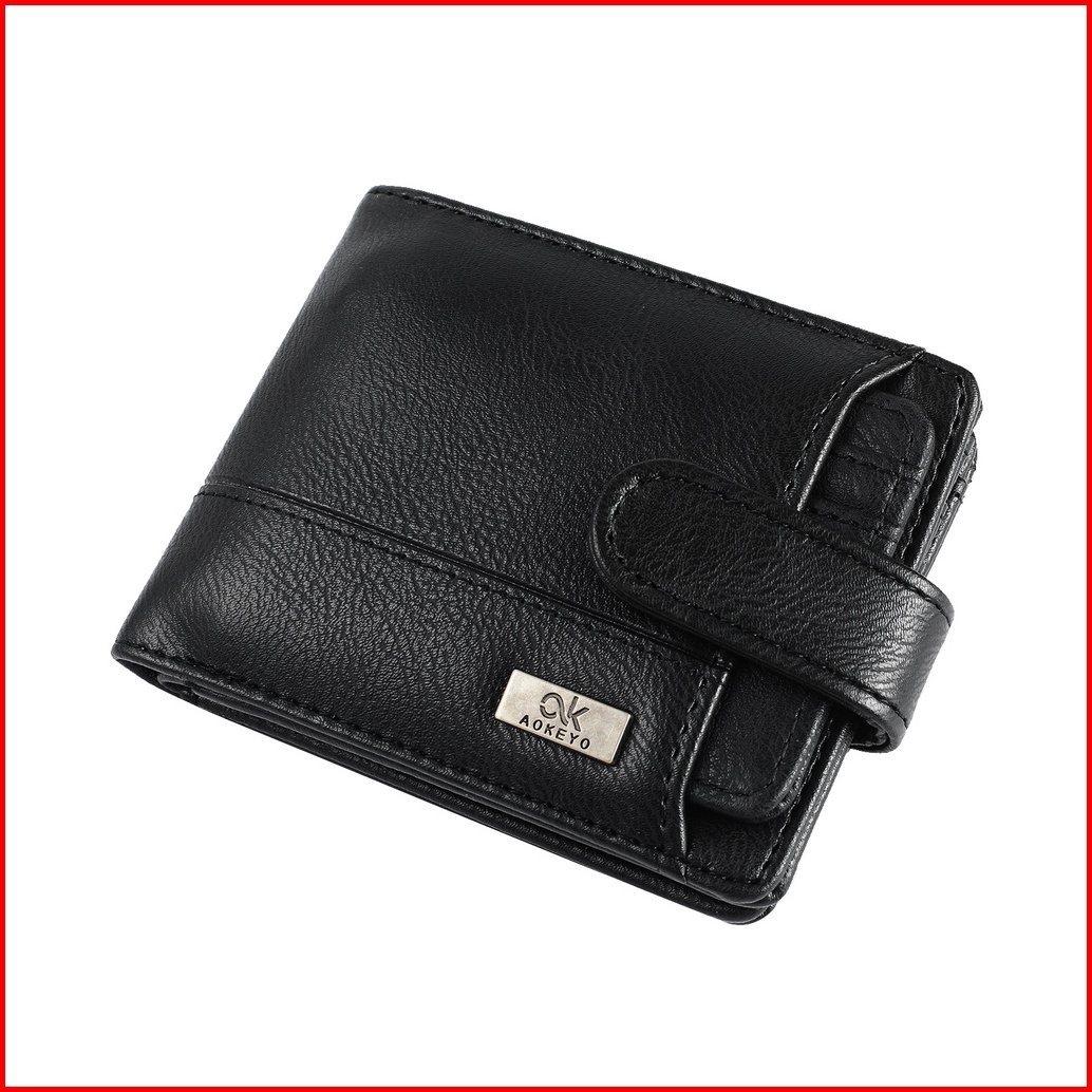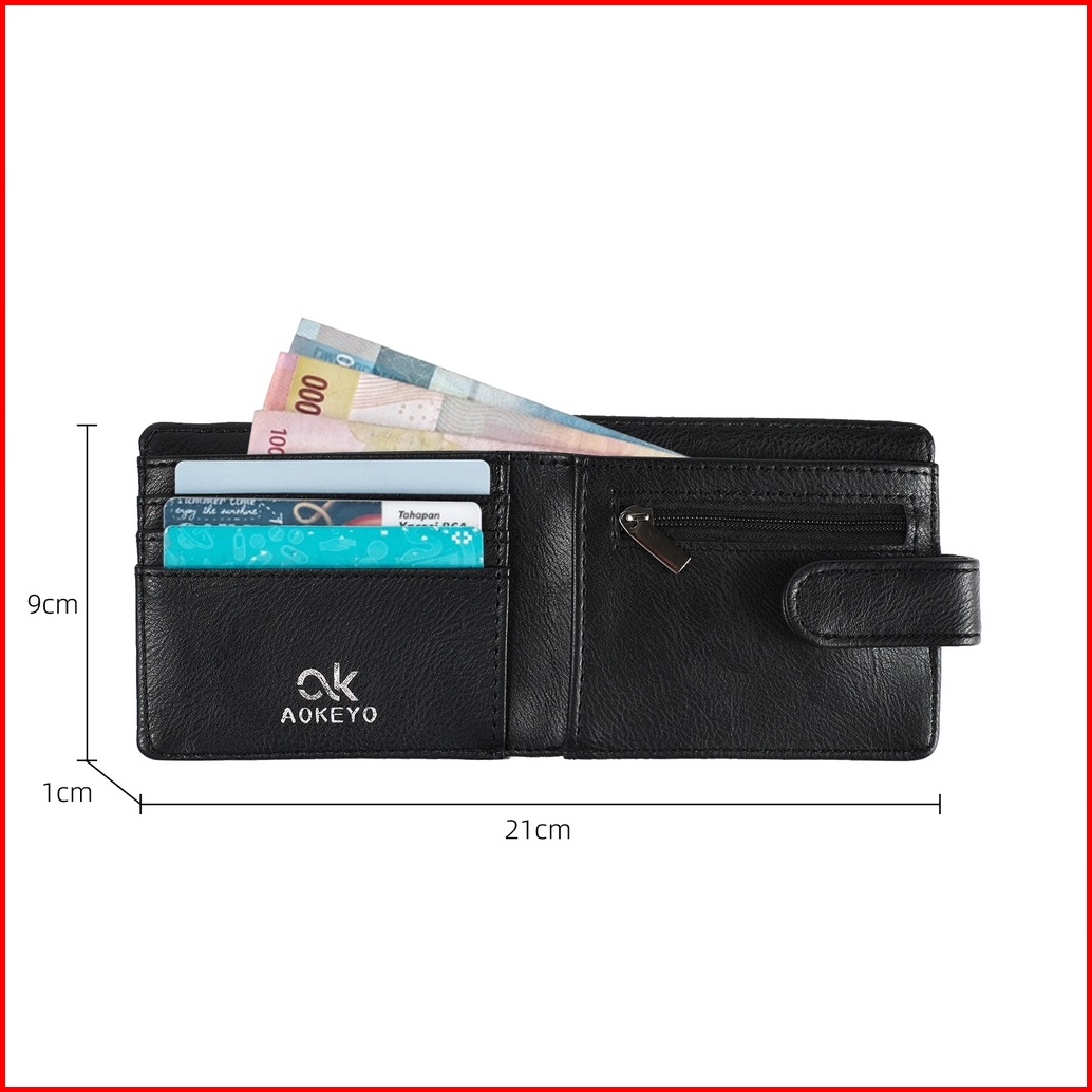 Aokeyo Dompet Pria Dompet Kulit Pria Dompet Lipat Pria Pendek 10 Slot Kartu Kotak Hadiah Gratis