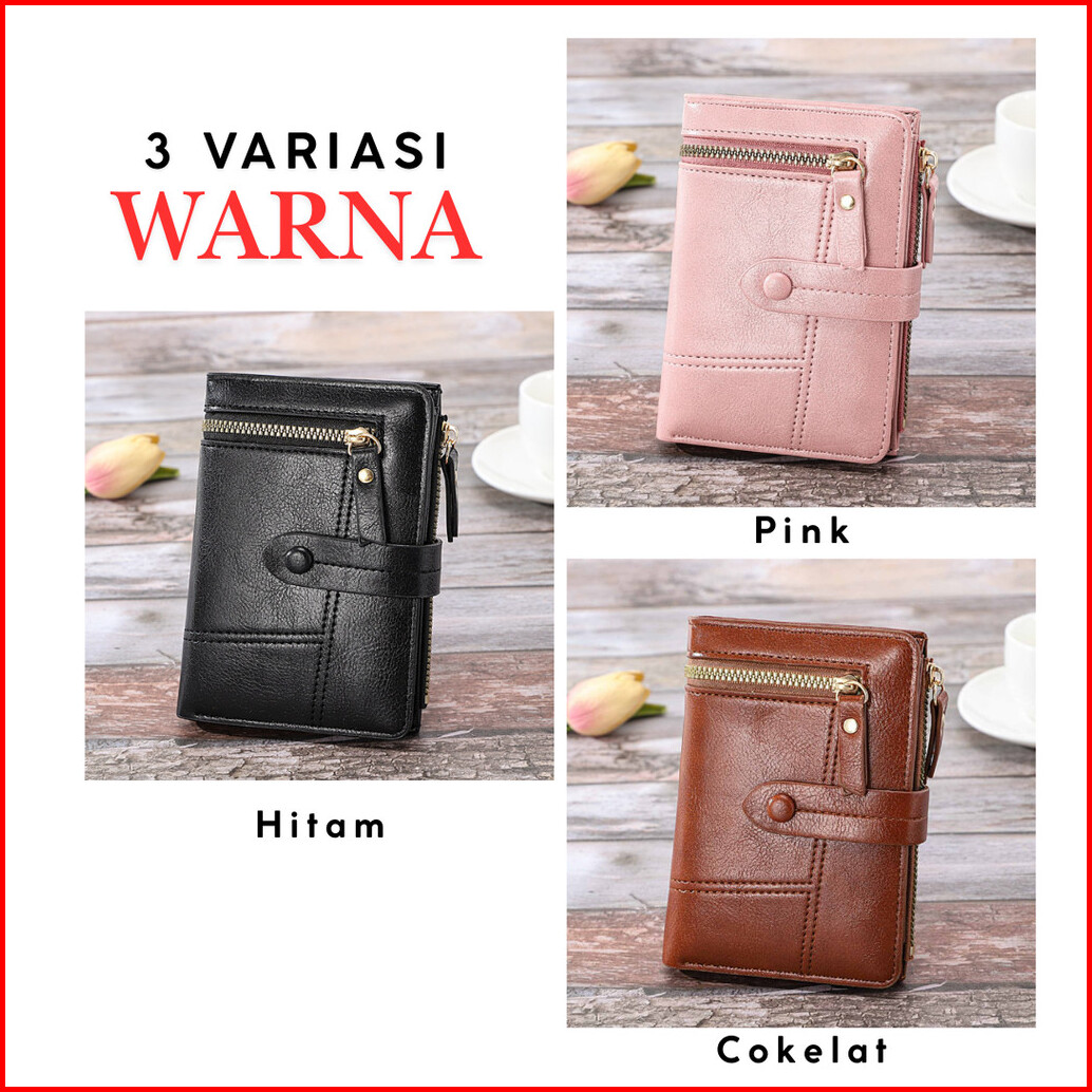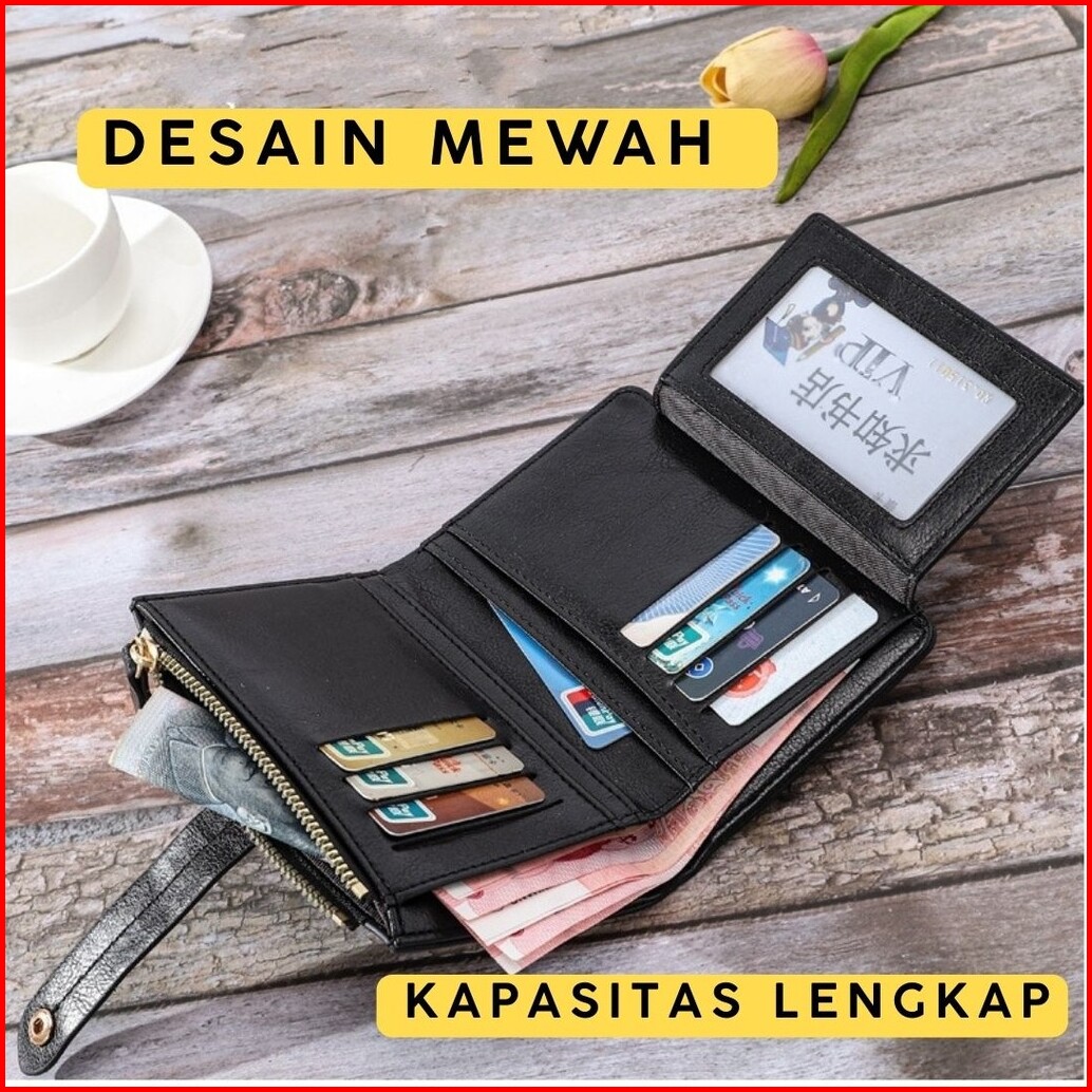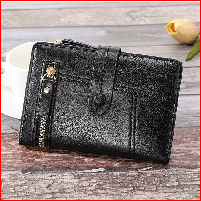 Dompet Lipat Wanita Korea Kekinian Kulit Hitam Jardine Mini Slot Kartu Resleting Uang Koin Kecil Remaja Cewek Simple Pre