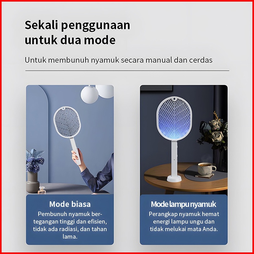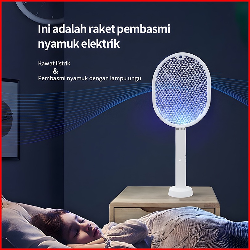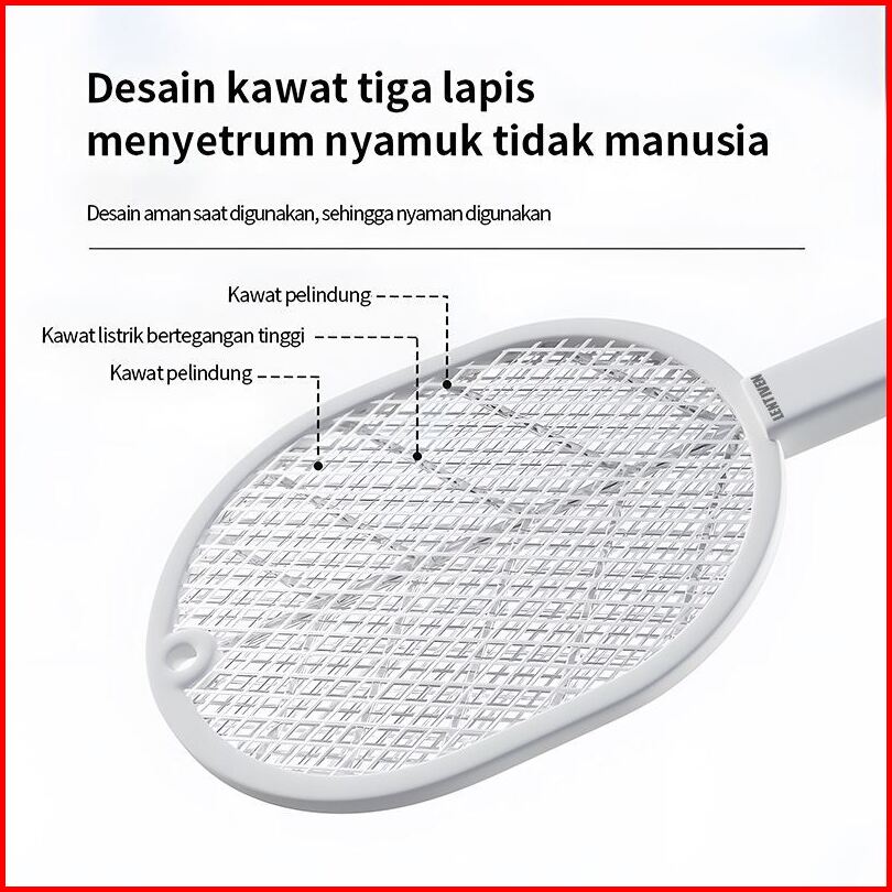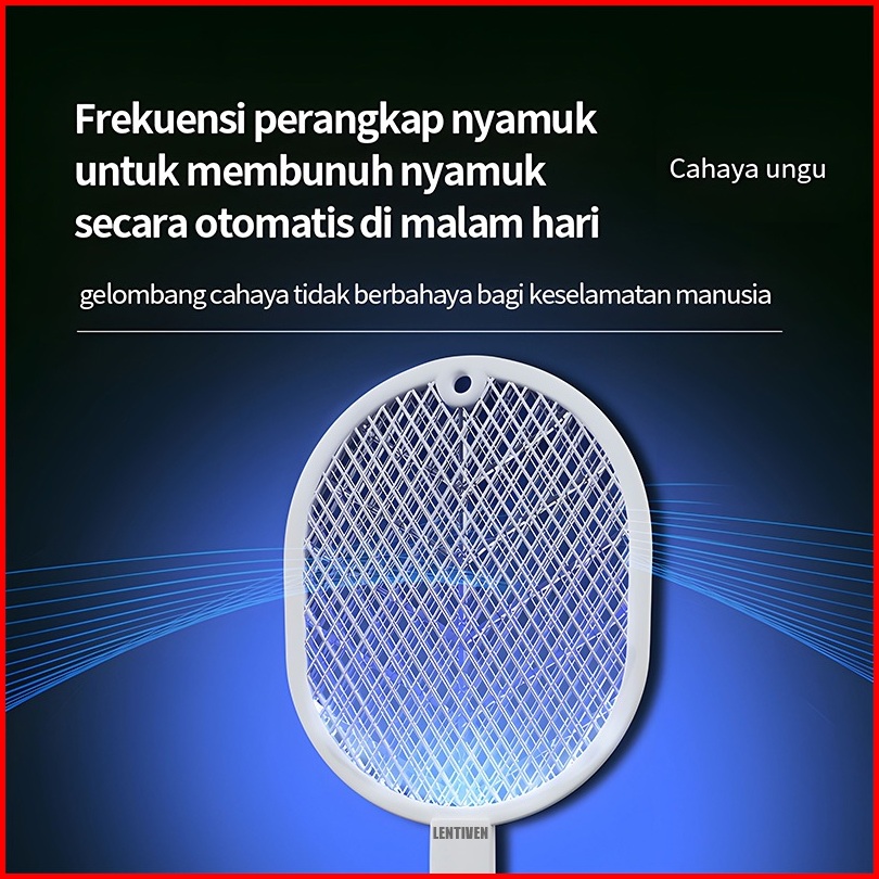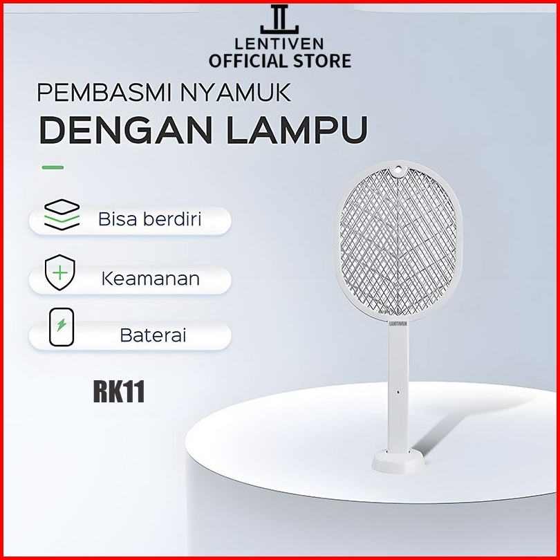 Lentiven Raket Nyamuk 2 In 1 Mosquito Killer Putih Dengan Basis Kabel Charger Rk11