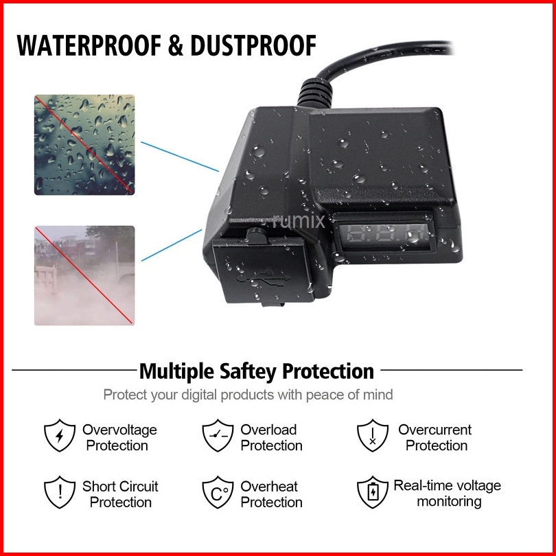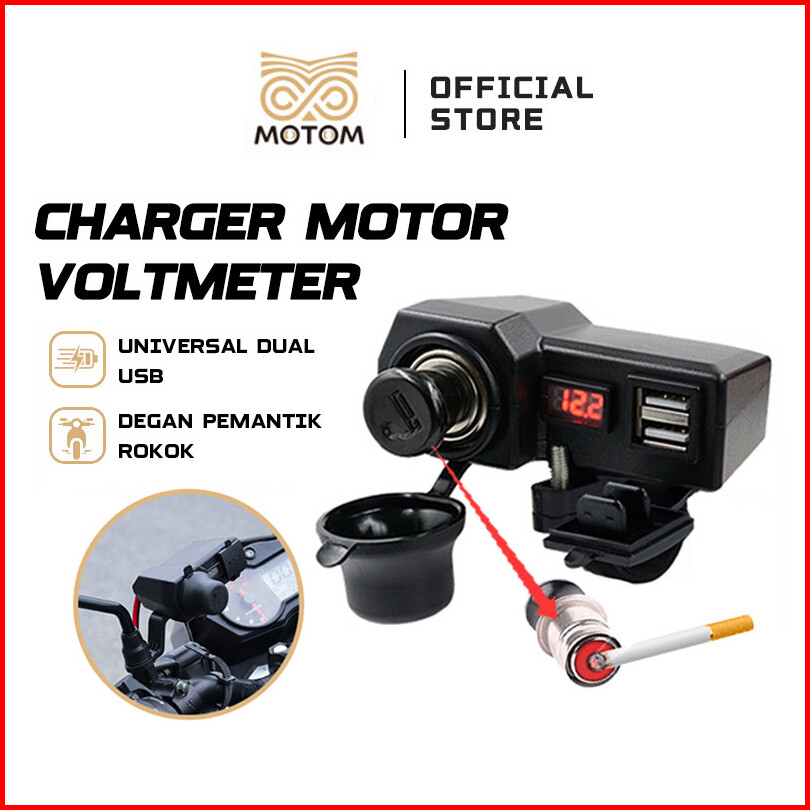 Motom 3 In 1 Motorcycle Charger Voltmeter Digital Cas Hp Untuk Di Motor Fast Charging Dual Usb 3.1a
