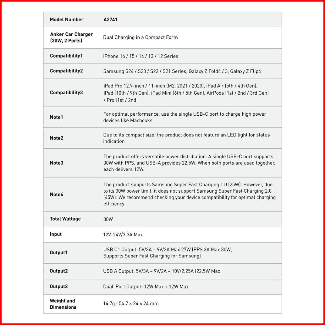 Anker Car Charger 30w 2-port Type-c Adapter Piq 3.0 - A2741