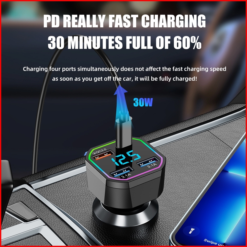 Car Charger 78w Qc 3.0 Quick Charge Charger Mobil 6a Usb Port Pd Type C Owire