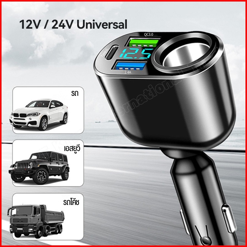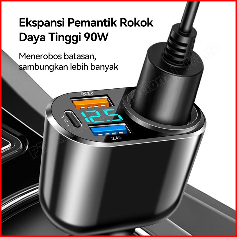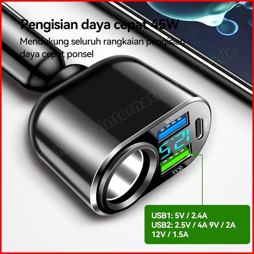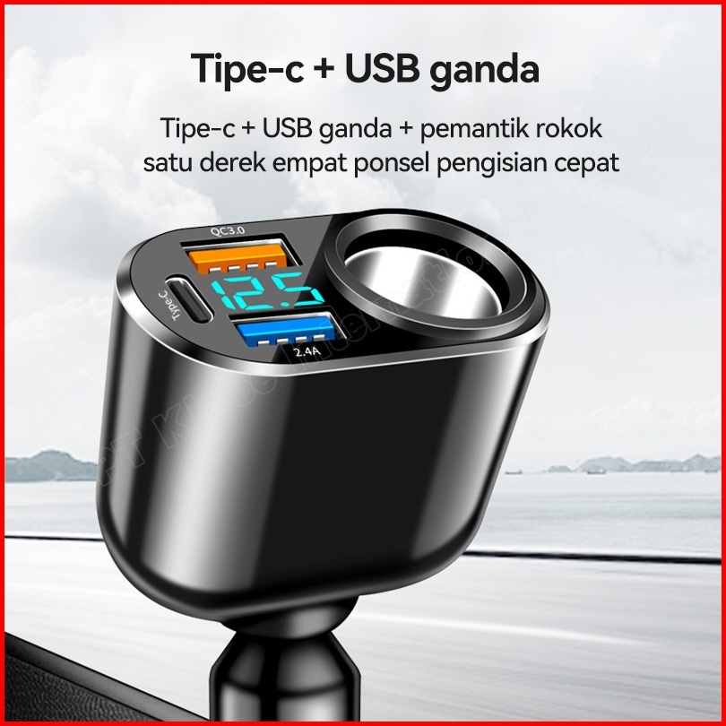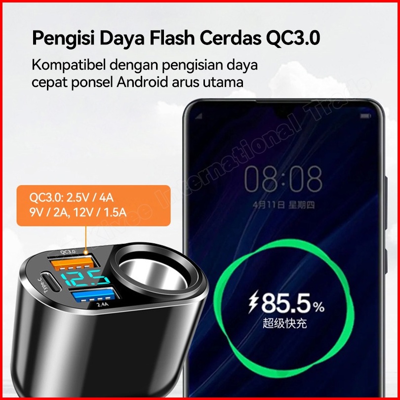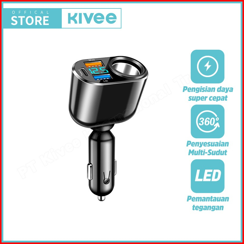 Kivee Car Charger Mobil Fast Charging 66w Kv-ut96 Black 4-in-1 Led For Iphone Xiaomi Samsung
