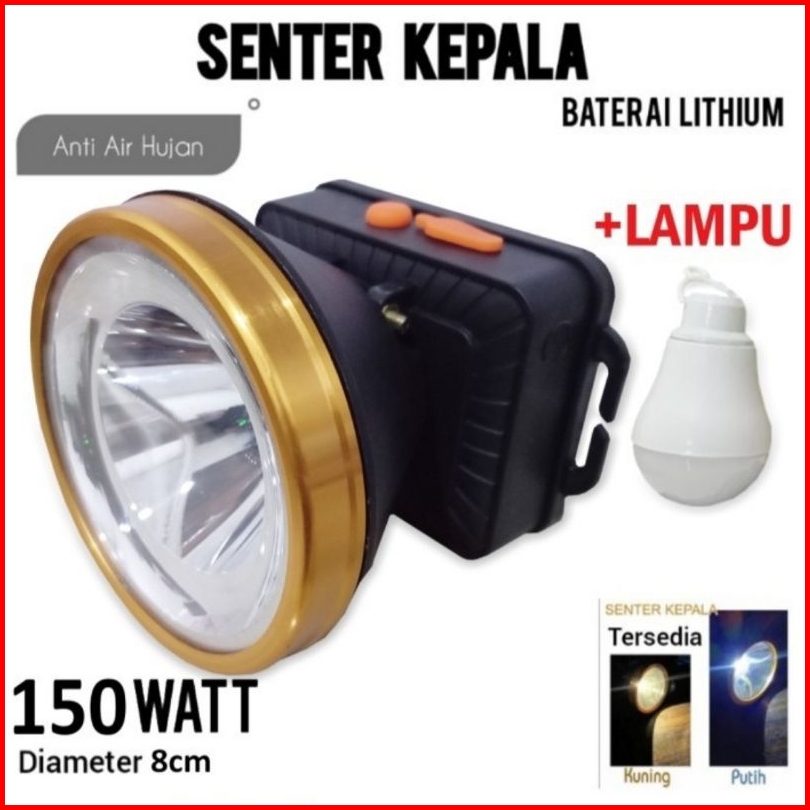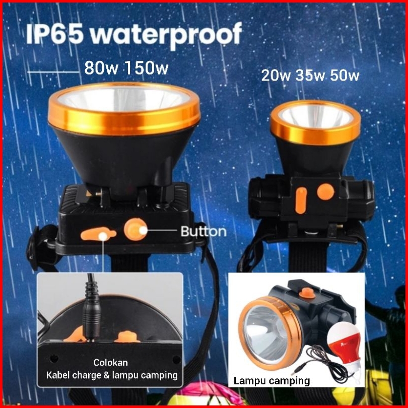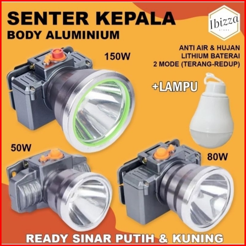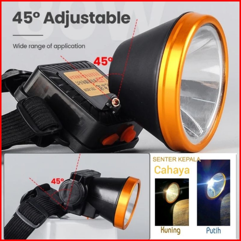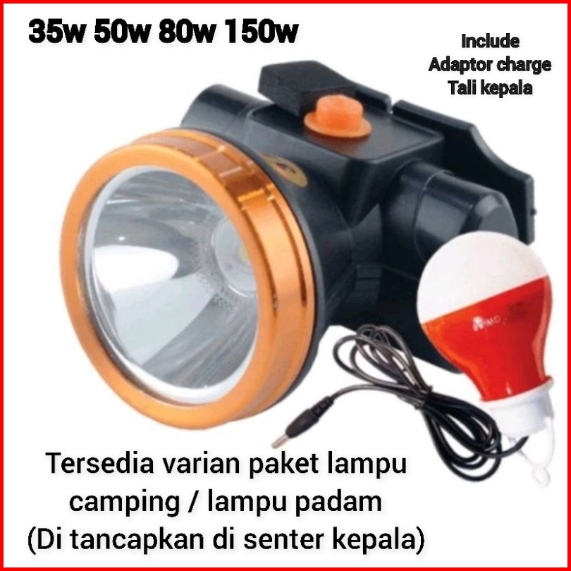 Senter Kepala 20w 35w 50w 80w 150w Putih Kuning Body Besar Kecil Super Terang Head Lamp Fokus Harga Grosir Murah-