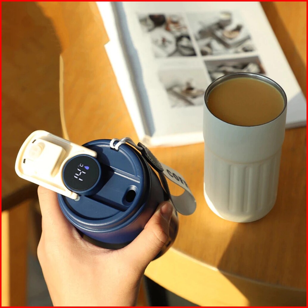 Cuculemon Termos Kopi Digital Led Tumbler Kopi Aesthetic Bottle Minum Air Panas Stainless 450ml Mug