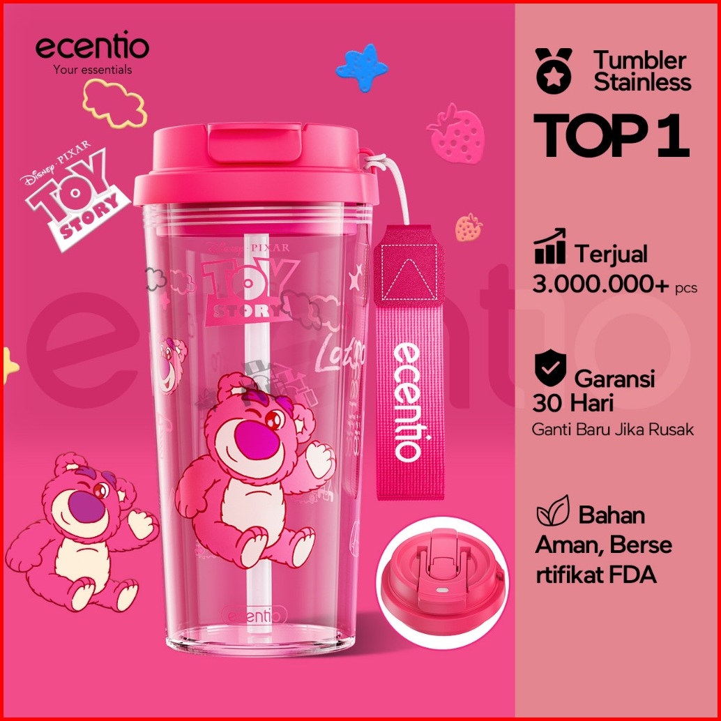 Ecentio Botol Minum Aesthetic 580ml Anak Perempuan Disney Collaborative Edition With Straw