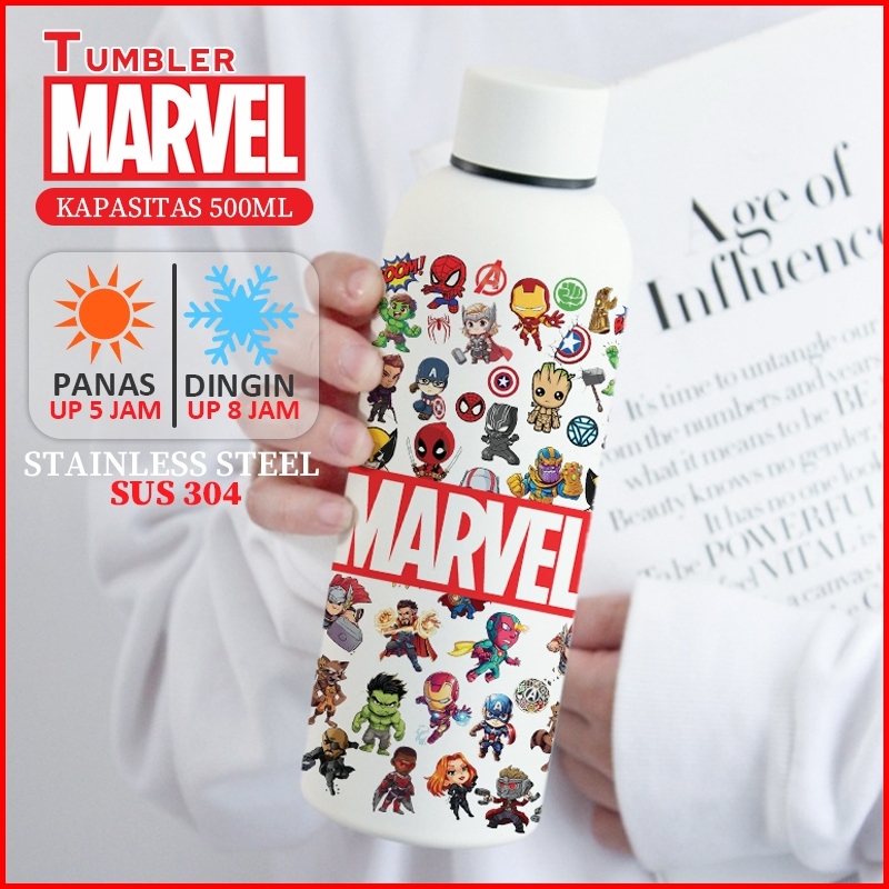 Tumbler Marvel Premium Kapasitas 500 Dan 400 Ml Termos Sekolah Karakter Not