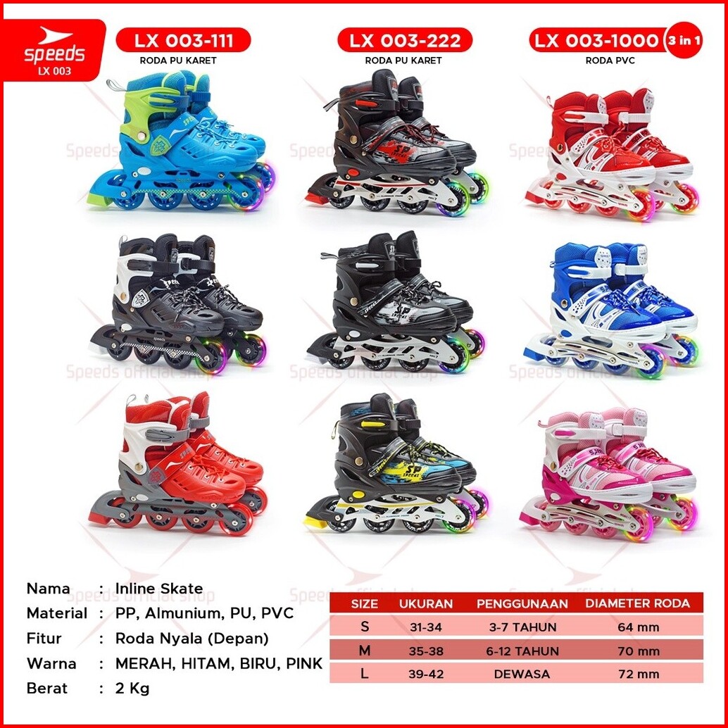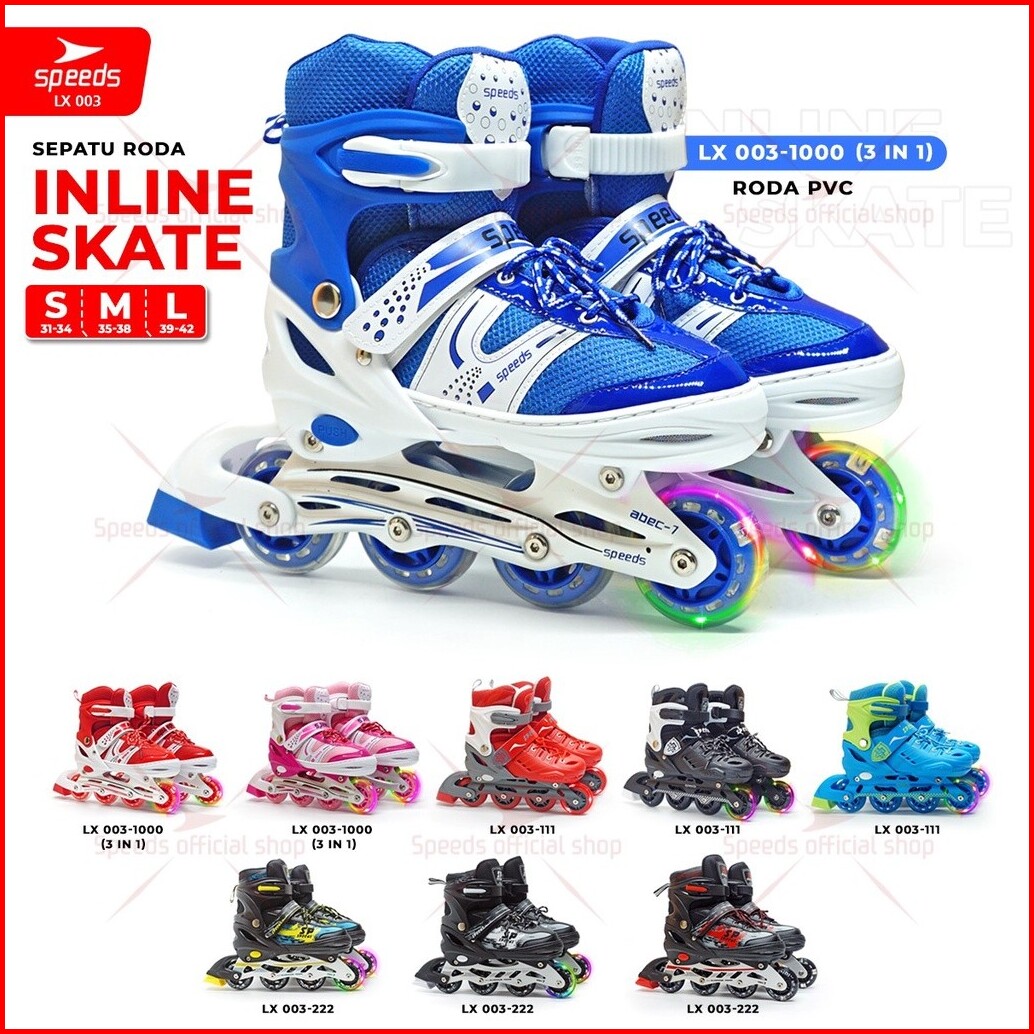 Speeds Sepatu Roda Anak Dan Dewasa Inline Skate Full Karet Pu Roda Nyala 1 Warna Random 003-222