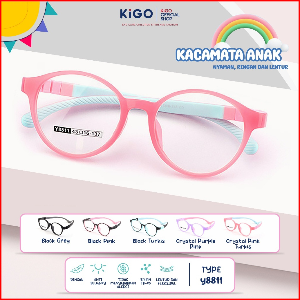 Kigo Kacamata Anak Anti Radiasi Blueray Photocromic Bluecromic Myopia Oval Tr-90 Fashionable Ringan Dan Nyaman Pria Wani