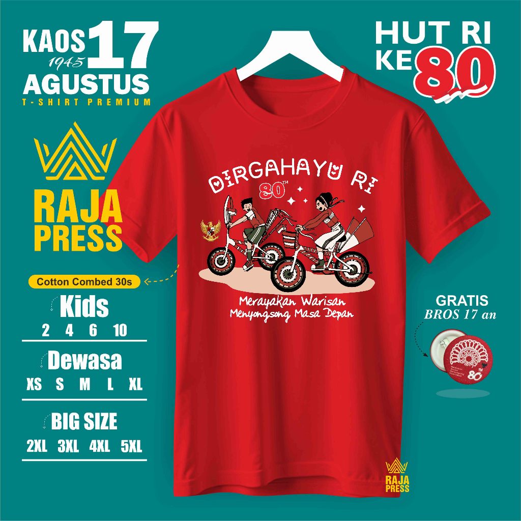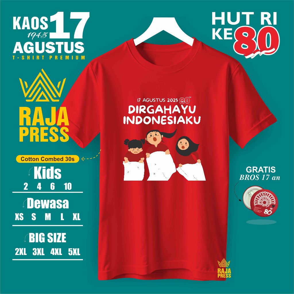 BAJU KAOS DIRGAHAYU INDONESIA 17 AGUSTUS 2025 KAOS HUT RI KE 80 ANAK DEWASA PREMIUM