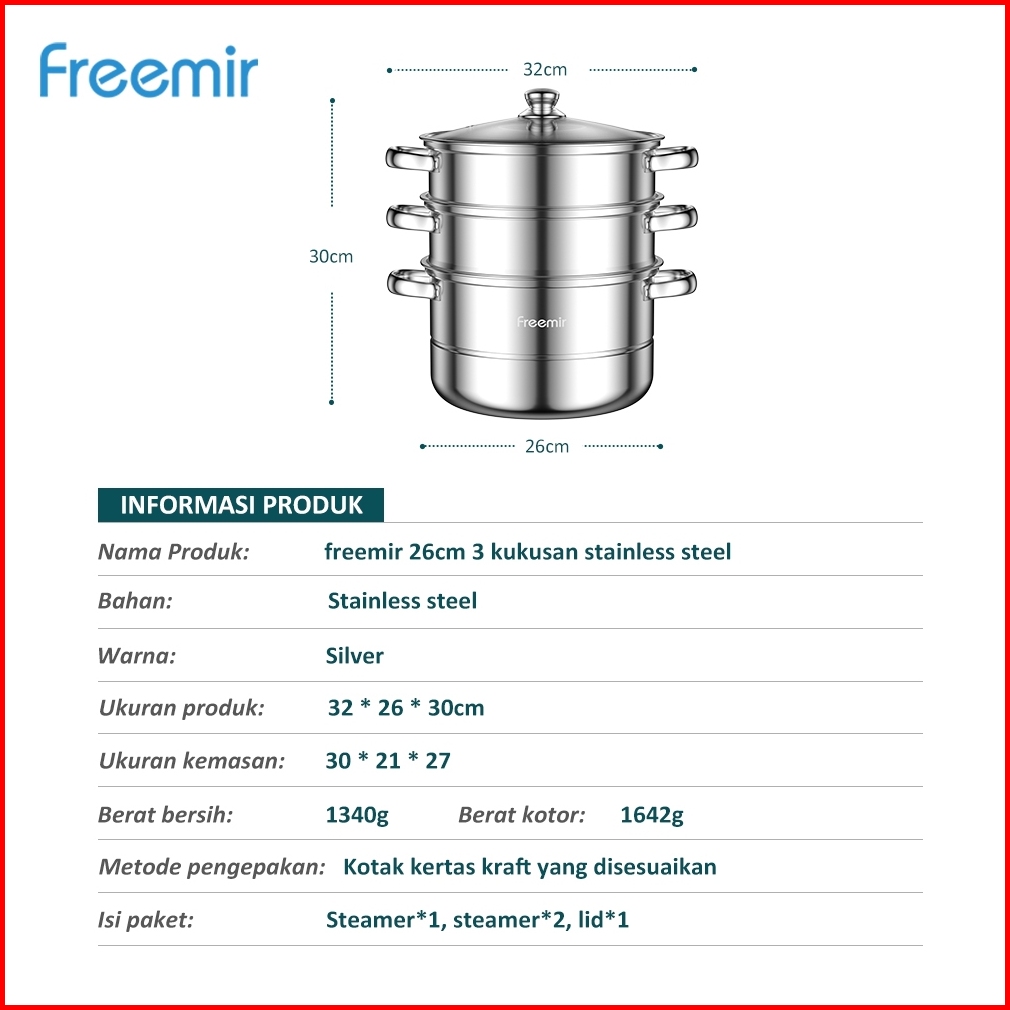 Mall Freemir Panci Kukus 2 3 Tingkat Panci Rebus Steamer Stainless Steel Multifungsi Anti Karat Garansi 100 Kerusakan