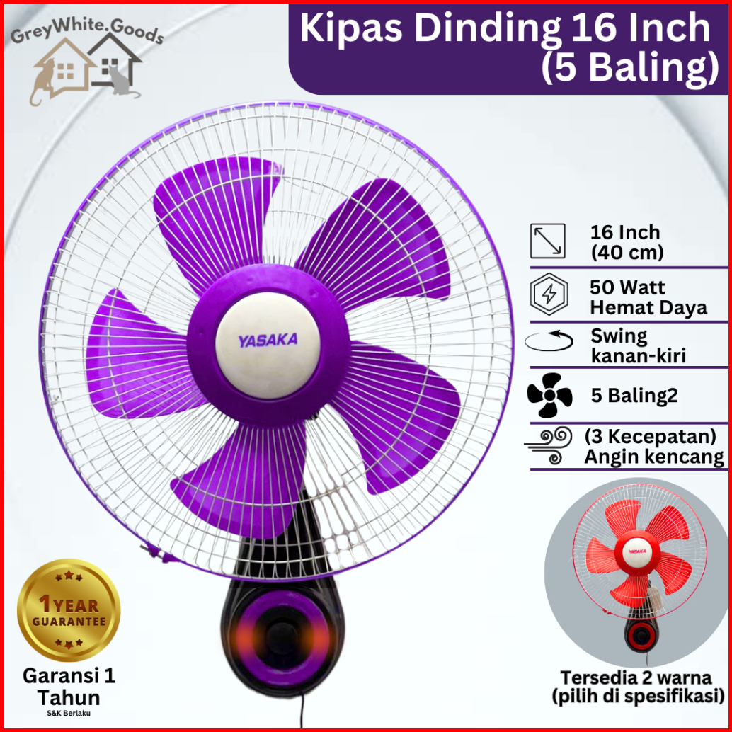 Kipas Angin Dinding 16 Inch Hemat Daya 5 Baling Angin Kencang