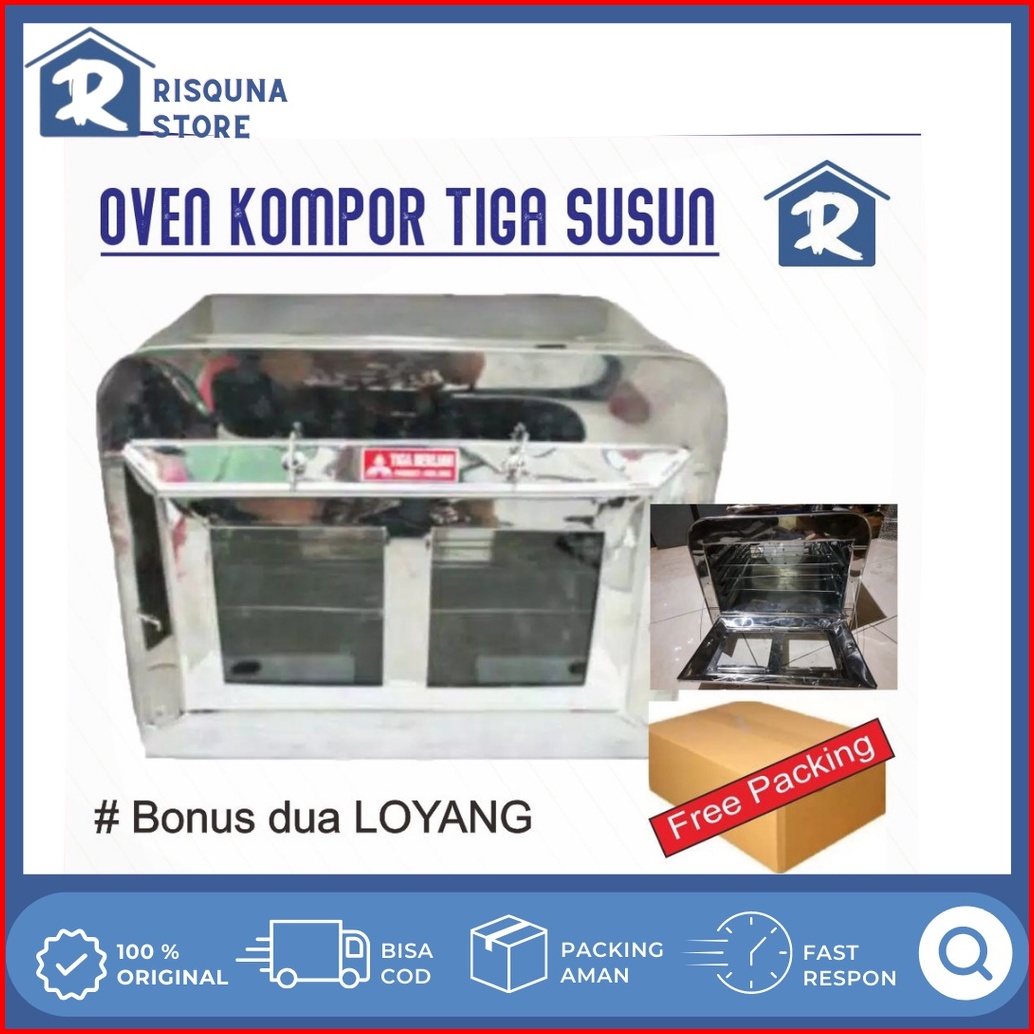 Oven Kompor Tangkring Kaca Doble Stenless - Bonus 2 Loyang - Stainless Stell