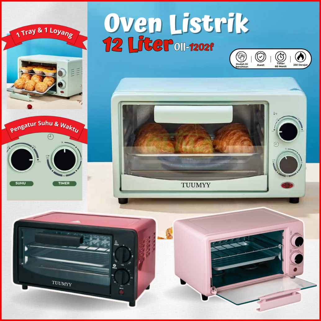 Oven Pemanggang Elektrik Multifungsi 12l Tuumyy Warna Pastel Oll-1202f