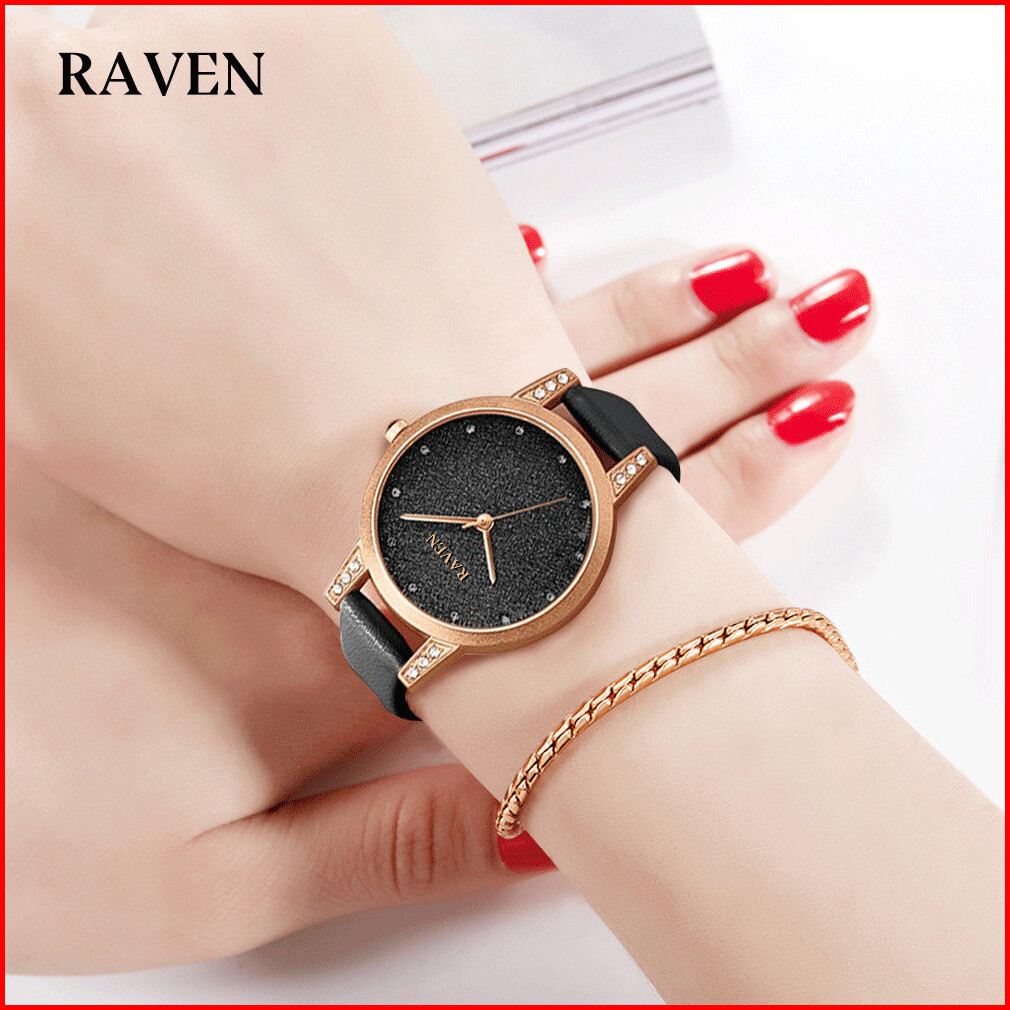 Raven Jam Tangan Wanita Mode Santai Original Anti Air Jam Wanita Tali Kulit Jam Tangan Cewek