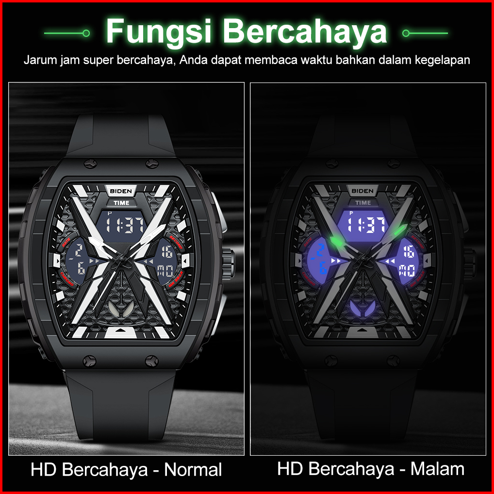 Biden Jam Tangan Pria Anti Air Original Digital Analog Multifungsi Alarm Tali Silikon Jam Tangan Cowok