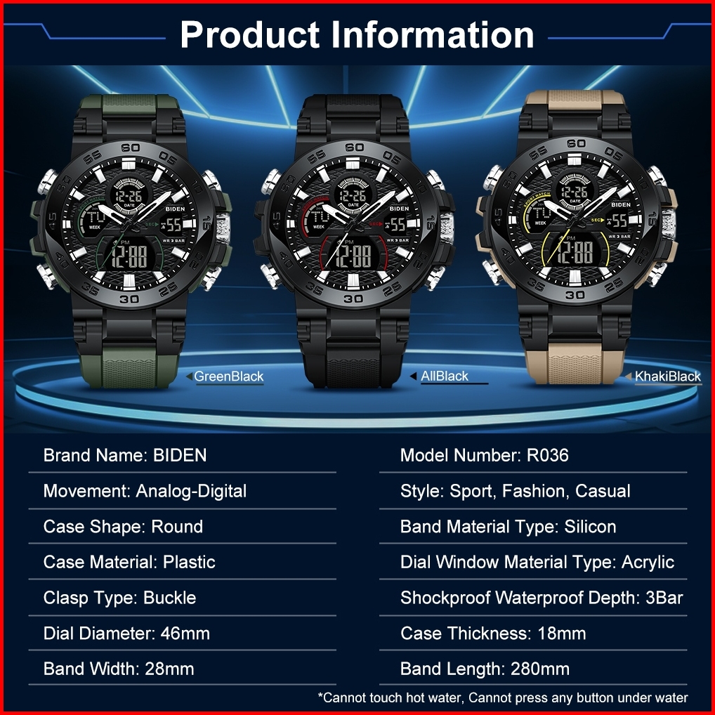 Biden Jam Tangan Pria Anti Air Fashion Date Luminous Multifunctional R036 Jam Tangan Cowok