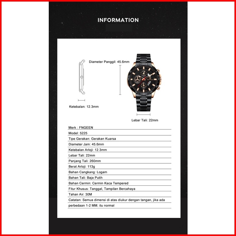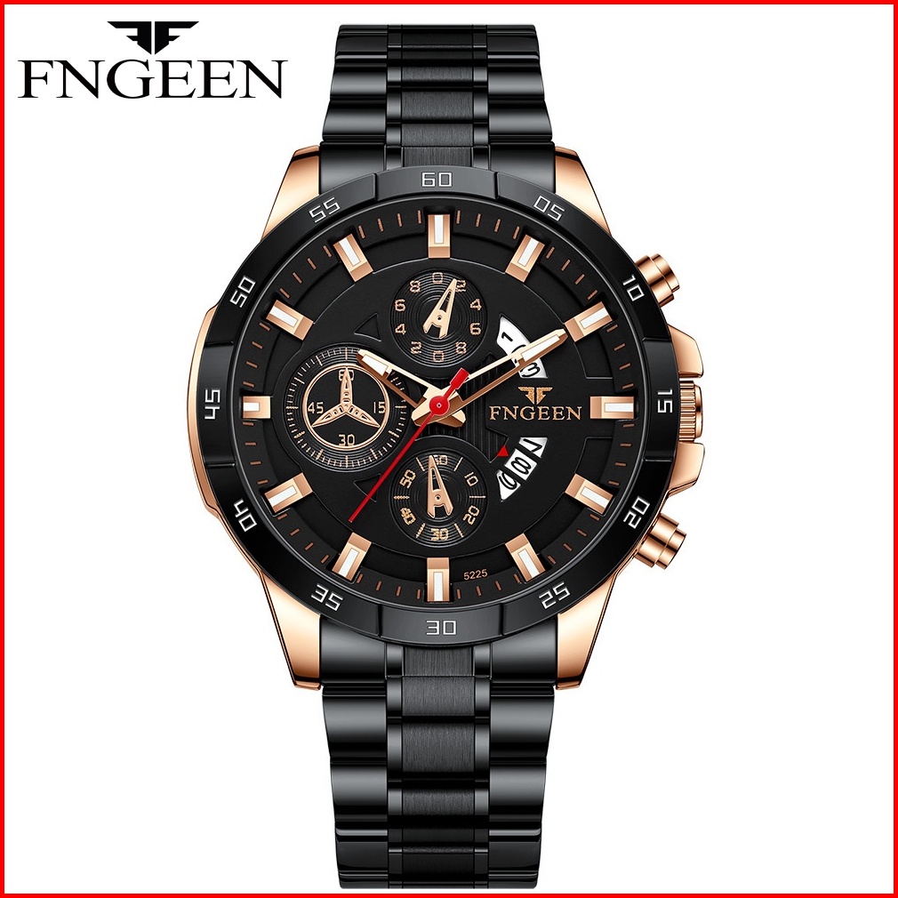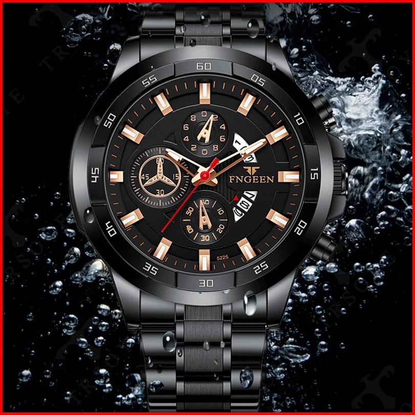 Fngeen 5225 Jam Tangan Pria Luxury Stainless Steel Sport Quartz Original Anti Air Watch