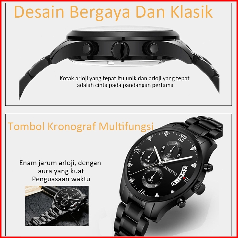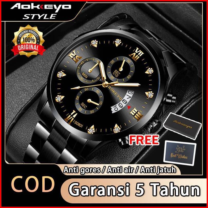 Termurahaokeyo 5080 Jam Tangan Pria Anti Air Original Luxury Stainless Steel Free Box Kartu Garansi