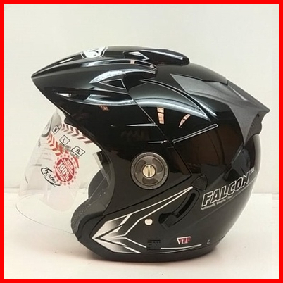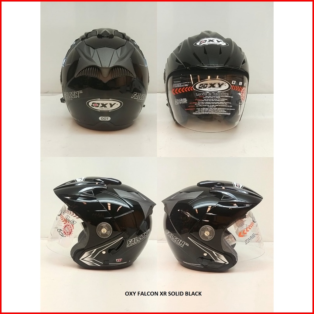 Helm Half Face Oxy Falcon Xr Solid Black Double Visor Size M L Xl Sni