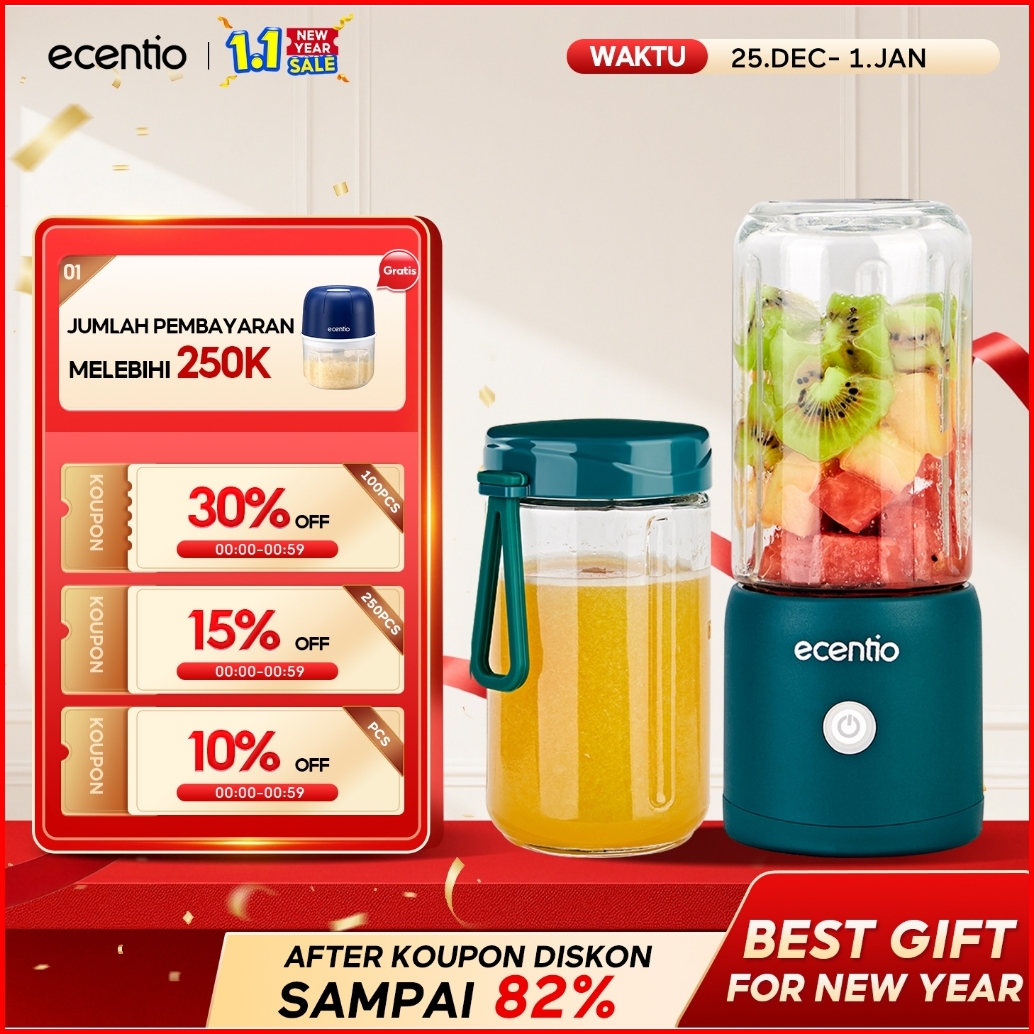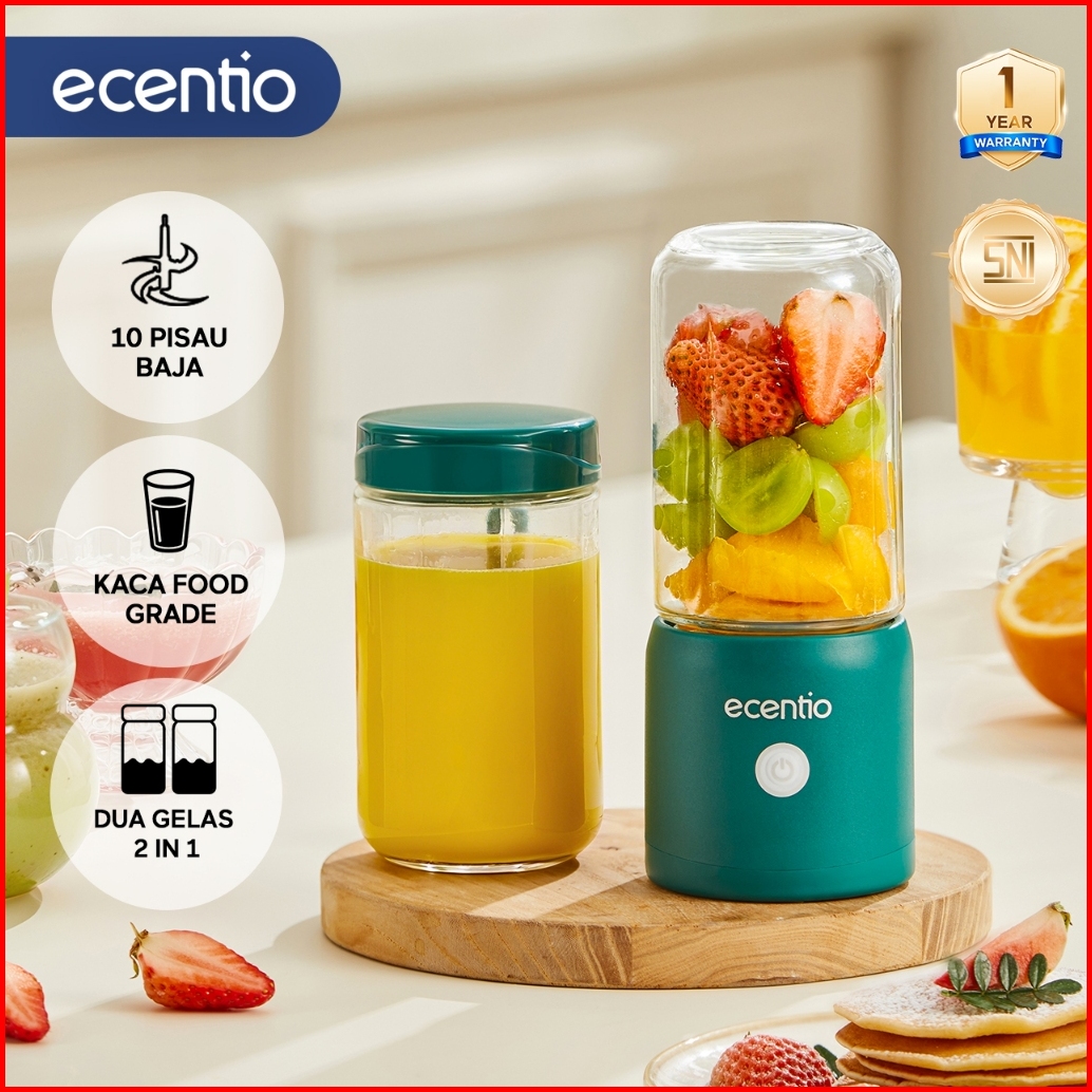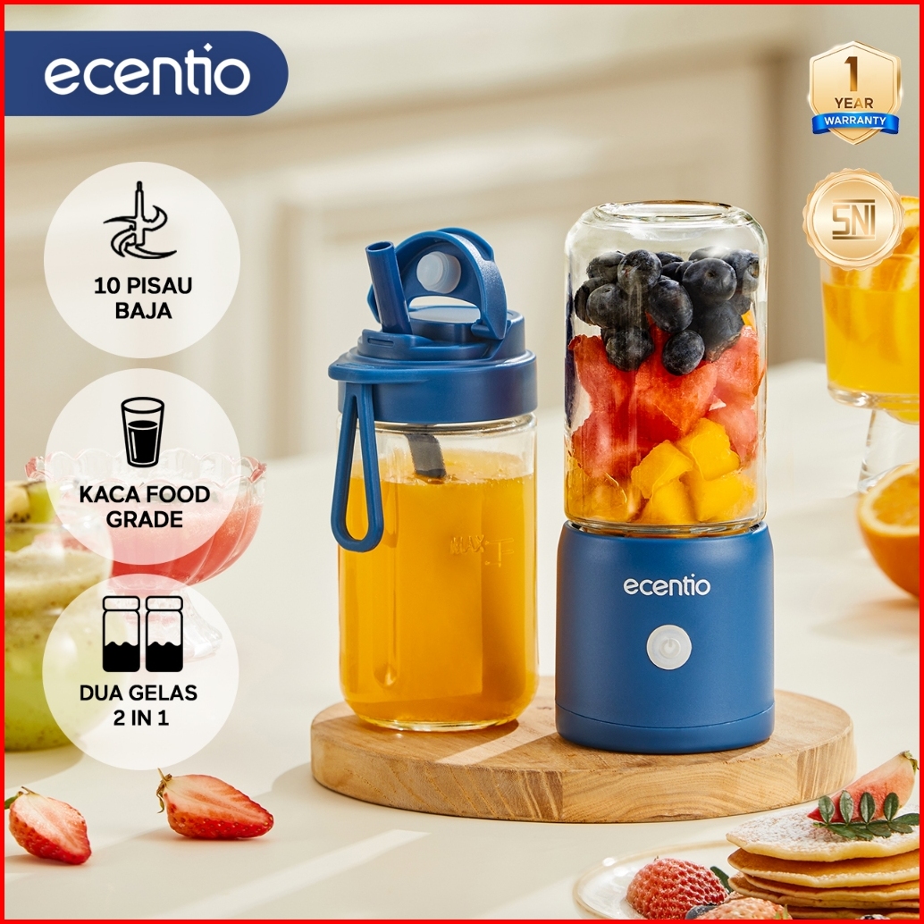 Ecentio Juicer 8 Mata Pisau Blender Kapsul 2 Kaca Gelas Juicer Portable Juicer Buah Tanpa Ampas Blender Jus Buah Blender