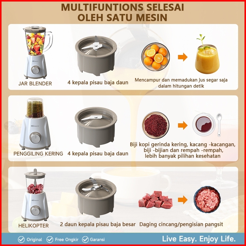 Maimeite 1.4l Blender Juicer Multifungsi Blender Blender Juicer Elektronik 3 In 1 Kapasitas 1.4 L Pengaduk Penggilingan