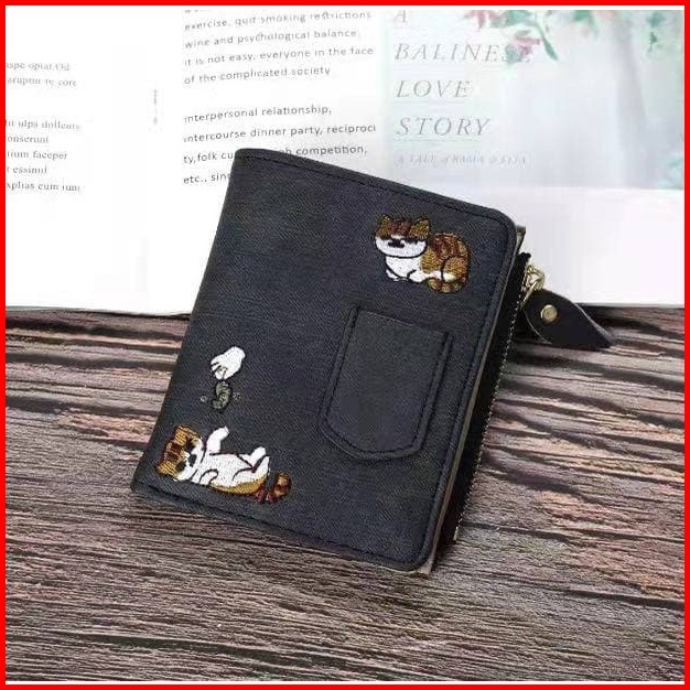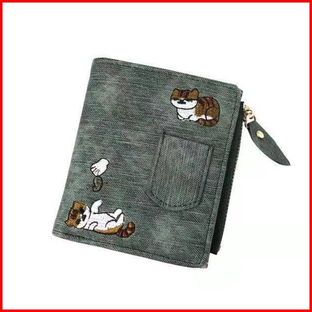 Dompet Wanita Lipat Kulit Kucing Felicia Import Murah Motif Wa033b2 Denim Ori C18219 Korea