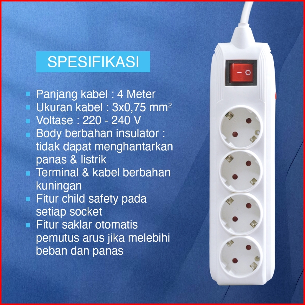 Kenmaster Stop Kontak 4 Lb Overheat With 4m Cable Sni - 4 Lubang 4 Meter - Stka125