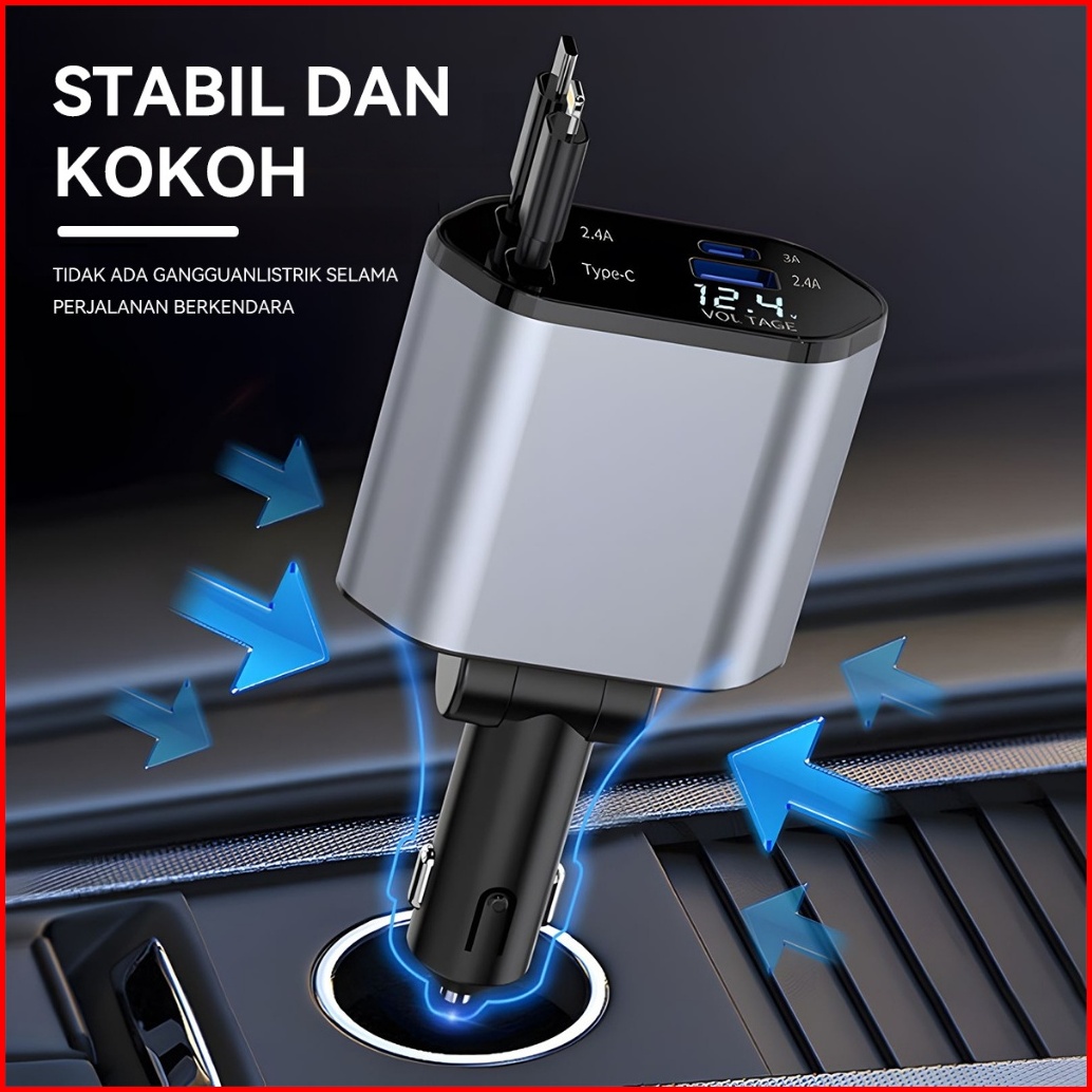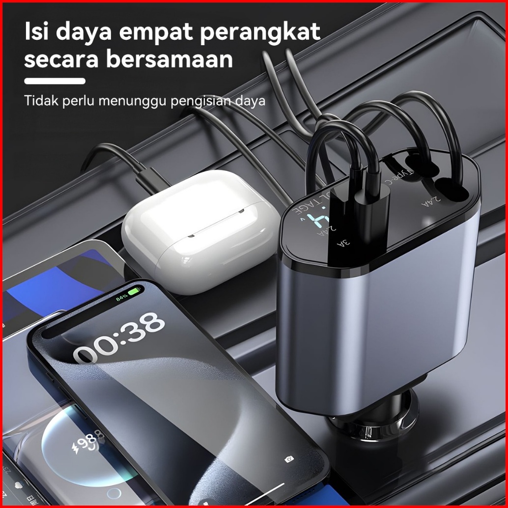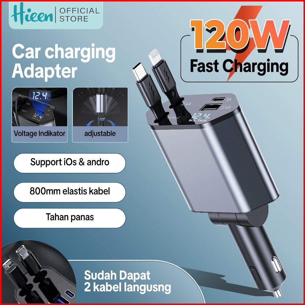 Hieen 4in1 Car Charger 120watt Pengisian Daya Cepat Colokkan Charger Mobil 4in1 Usb Type-c Ios Lightning Adapter Cc20