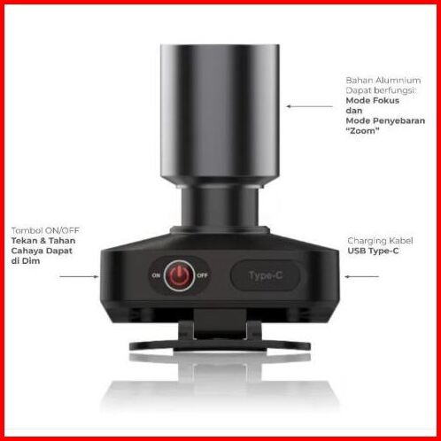 Senter Kepala Zoom Aoki Ak-3685a Super Terang Head Lamp Led 60 Watt Super Terang Senter Kepala Rechargeable Type C
