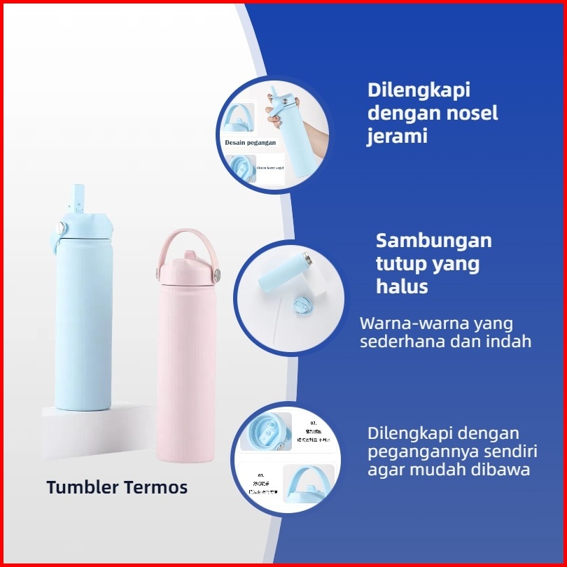 Cuculemon Termos Stainless Steel Straw Bottle Botol Minum Aesthetic 750ml Tahan Panas Dingin