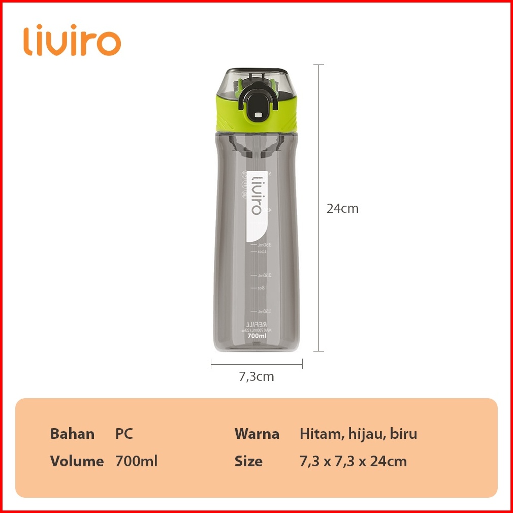 Liviro Botol Minum Toff 700 Ml Botol Air Minimalis Sporty Premium Silicone Straw