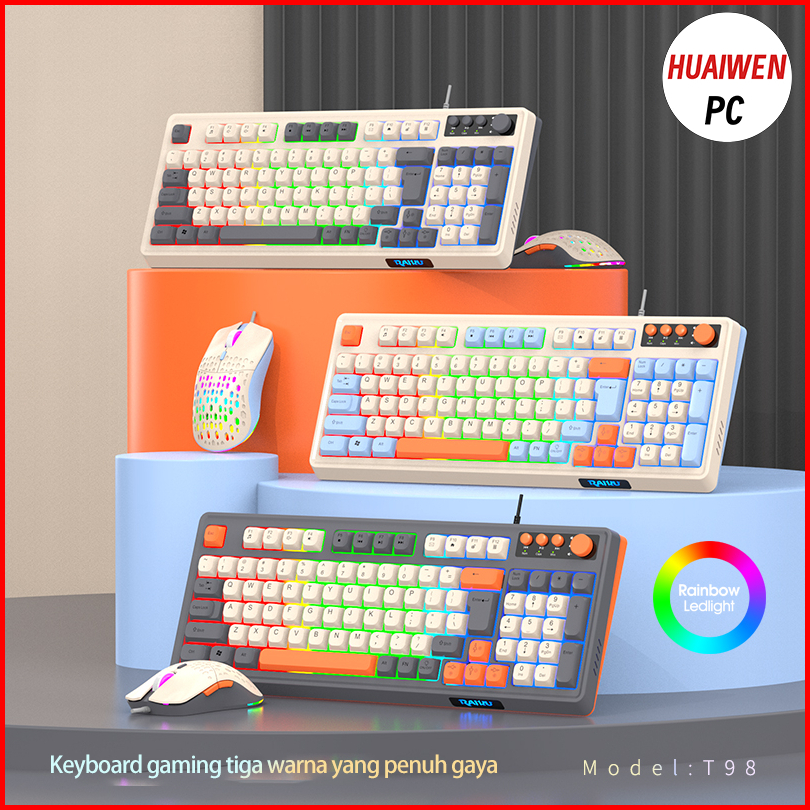 Hw Set Keyboard Gaming K98 Gaming E-sports Jerman Dengan Kabel Switch Coklat Senyap Sensasi Mekanis Dan Nirkabel.