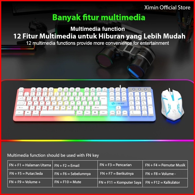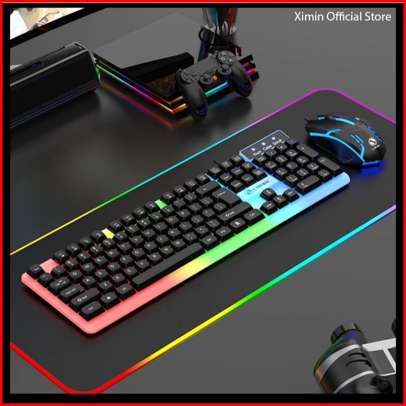 Ximinkeyboard Mouse Rgb Gaming Dengan Lampu Rgb Cahaya Termasuk Mouse Dan Keyboard - Keyboard Mekanikal Untuk Pc Desktop