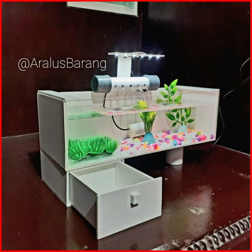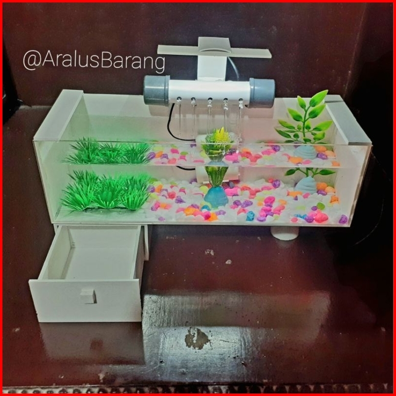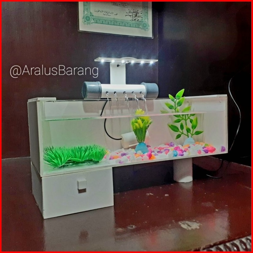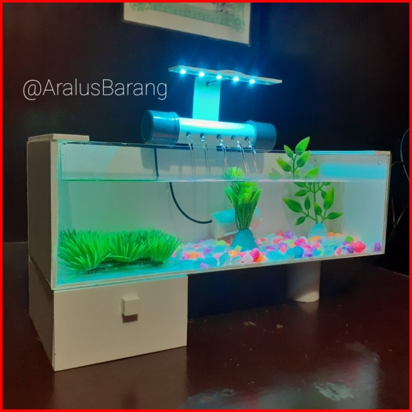 Aquarium Minimalis Fullset Dengan Filter Dan Lampu Led