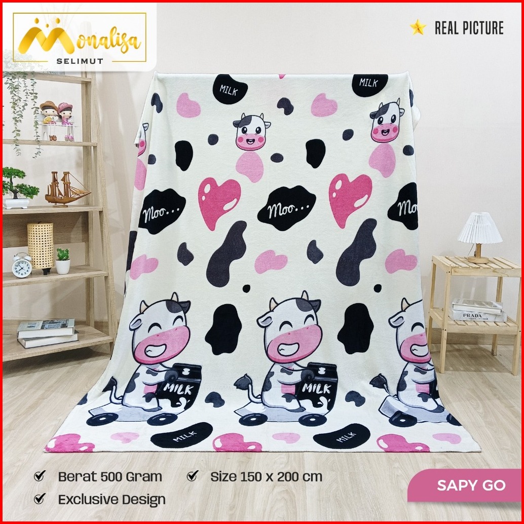 Monalisa Selimut Bulu Uk 150 X 200 Cm 500 Gram Bahan Polyester Motif Minimalis Halus Lembut
