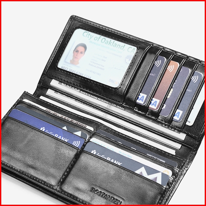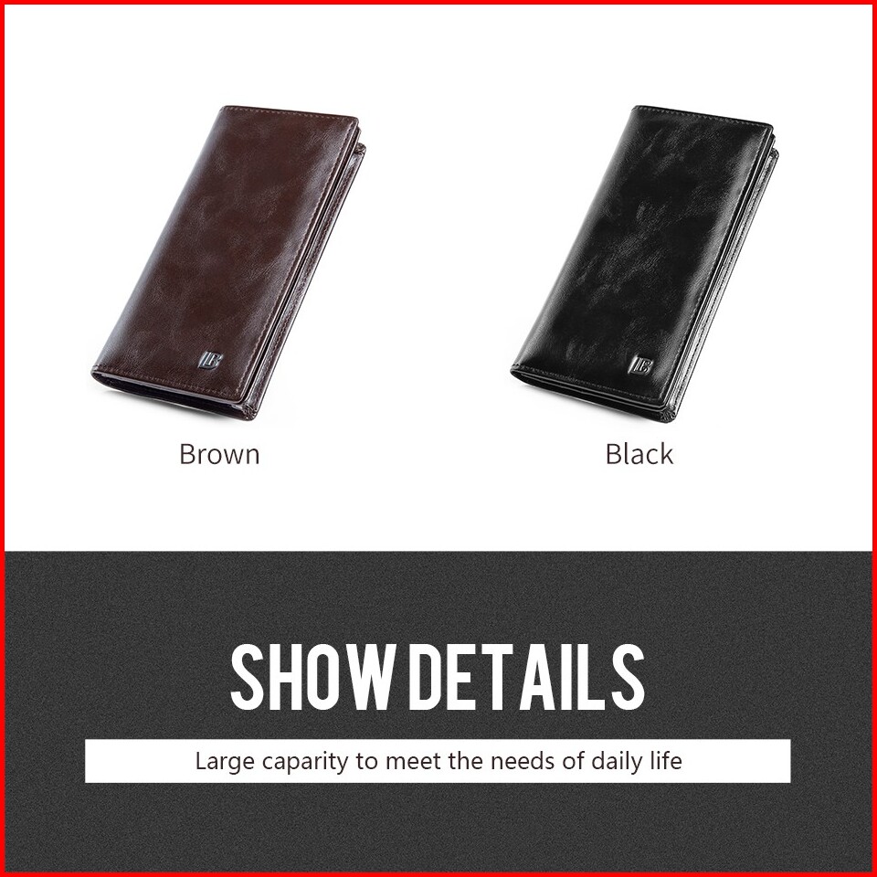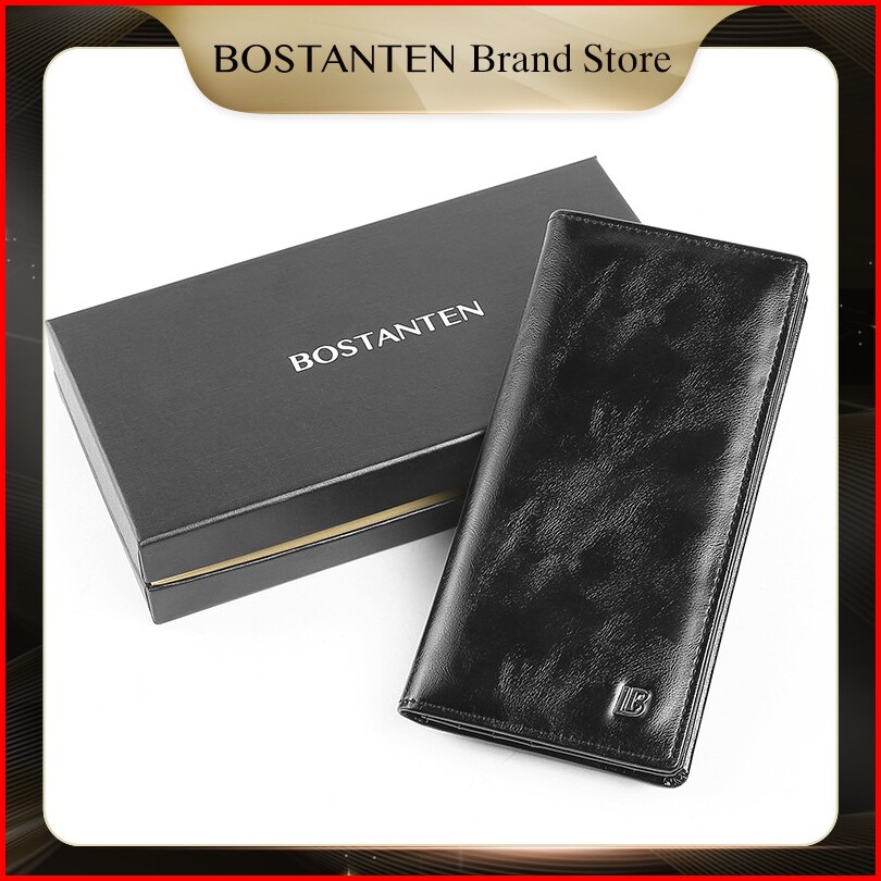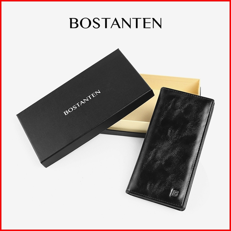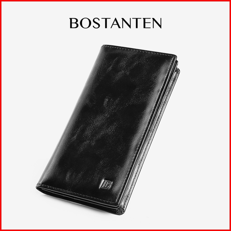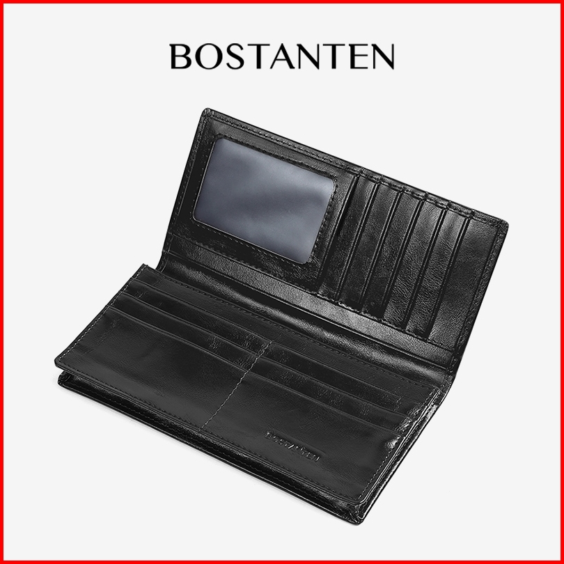 Bostanten Dompet Lipat Panjang Pria Slot Kartu Kulit Pu Warna Hitam Kopi
