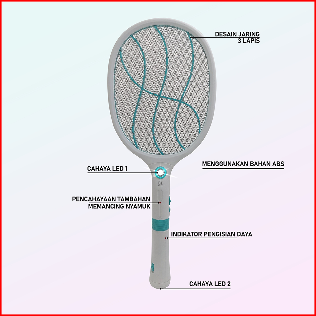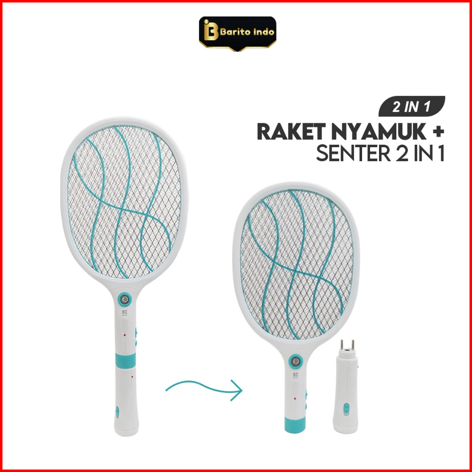 Baritoindo Raket Nyamuk Elektrik 2 Lampu Led Charger 3 Lapis Jaring Pembasmi Nyamuk - Dwp3