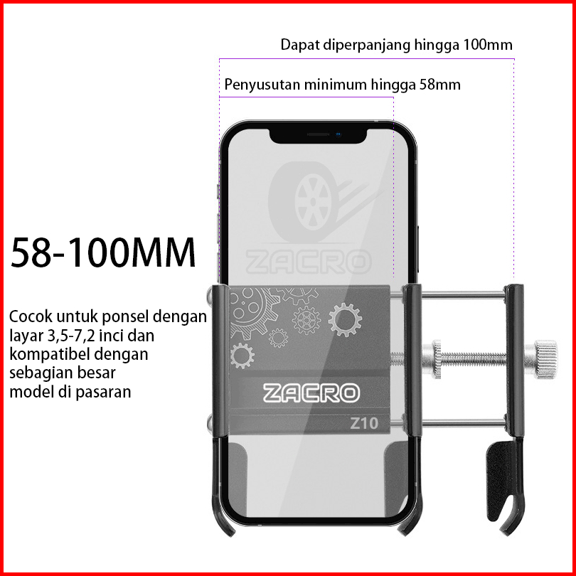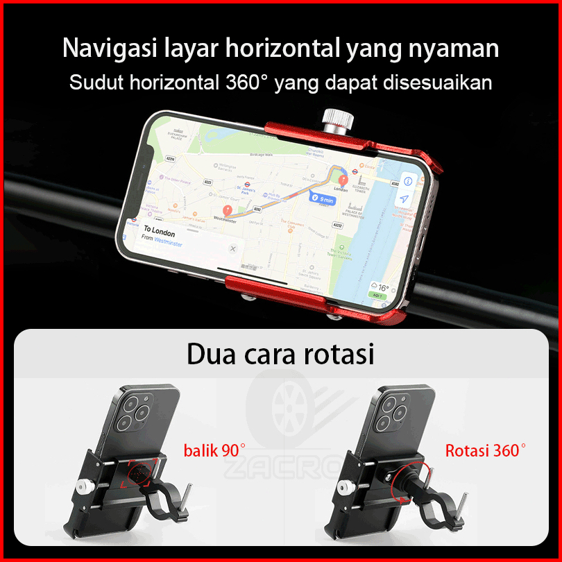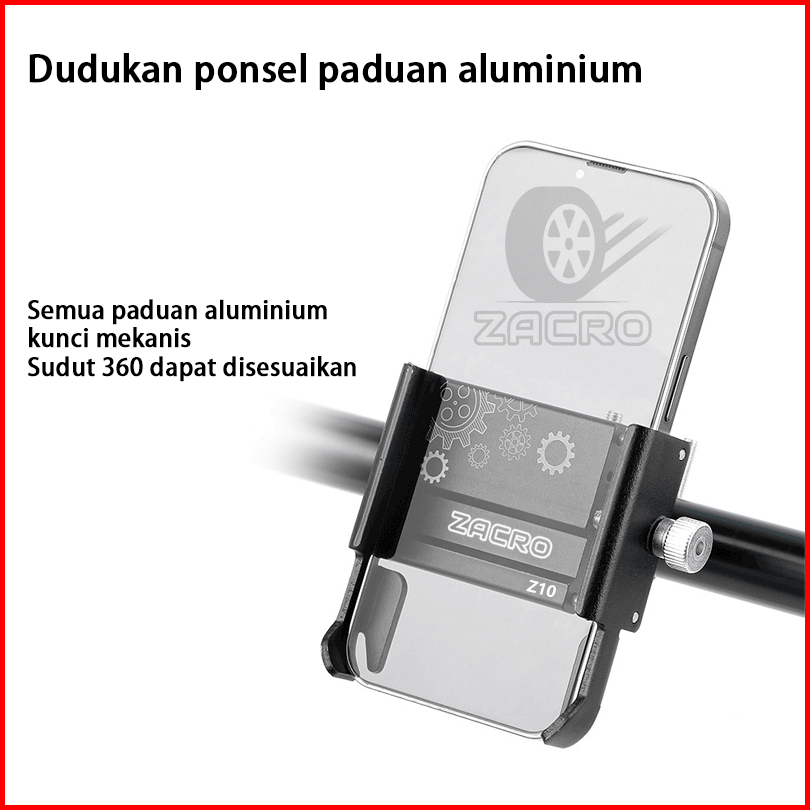 Zacro Z10 New Holder Hp Motor Dudukan Ponsel Aluminium Aloy Holder Handphone Motor Rotasi 360 Derajat