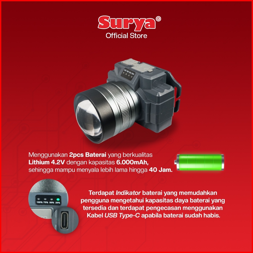 Surya Lampu Senter Kepala Led Syh T755z Rechargeable